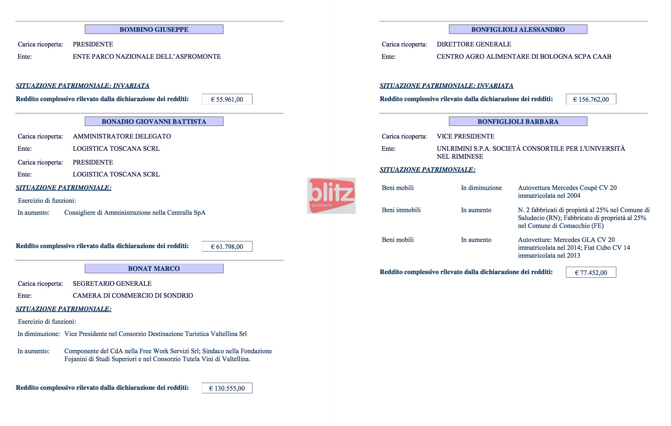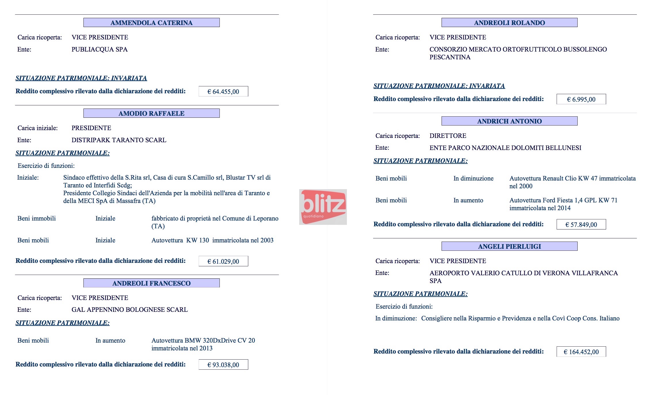 - Renzo Ascari Liquidatore Brianza Fiere spa 84.325 (Coniuge: Ivana Galbiati 14.120)