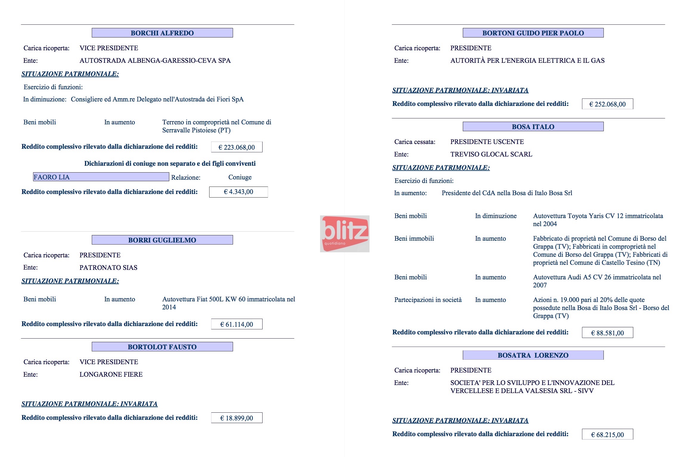 - Alfredo Borchi Vicepresidente Autostrada Albenga-Garessio-Ceva Spa 223.068 (Coniuge: Lia Faoro 4.343)