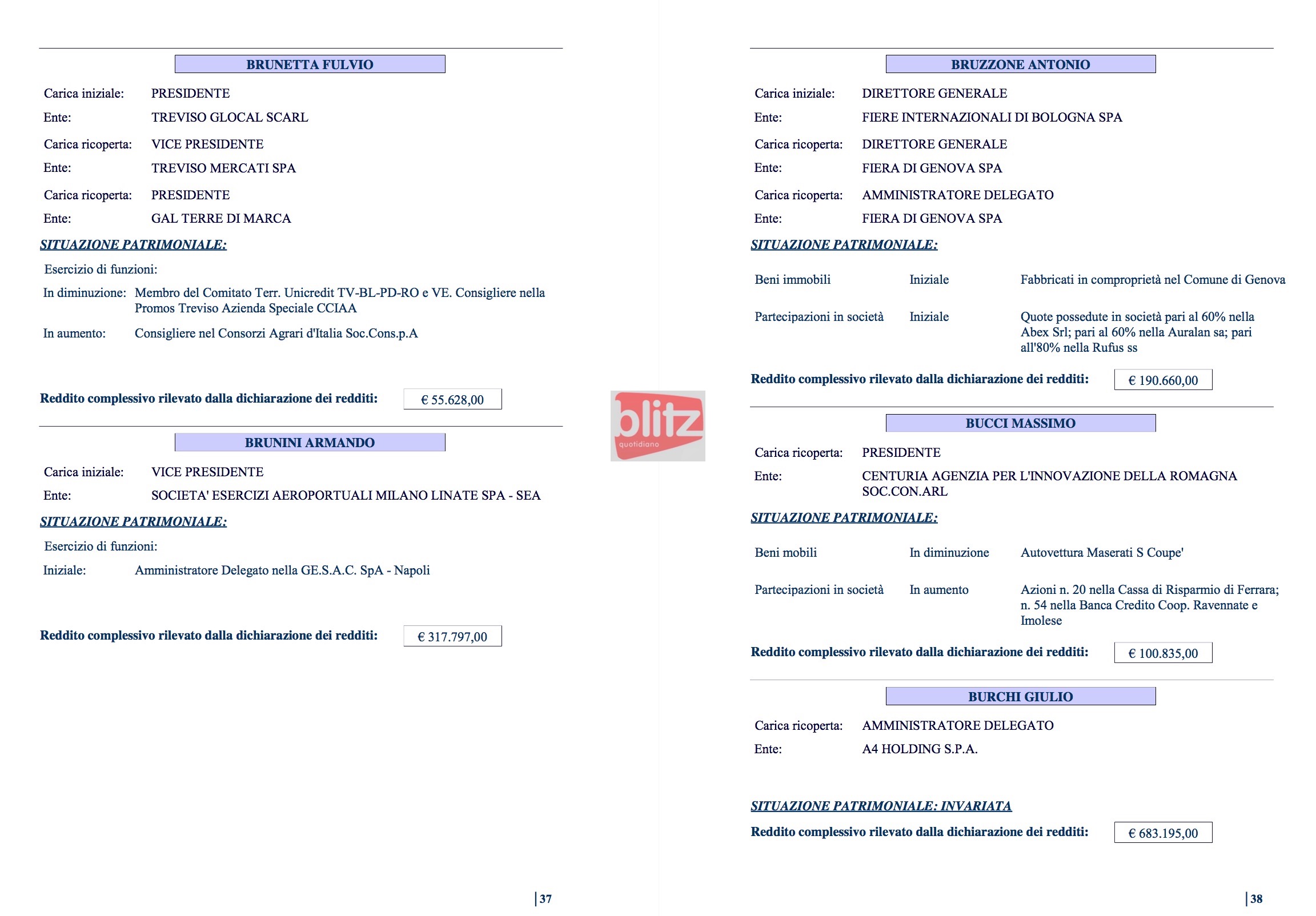 - Antonio Bruzzone Diettore generale Fiere internazionali di Bologna Spa, Direttore generale e Amministratore delegato Fiera di Genova Spa 190.660
