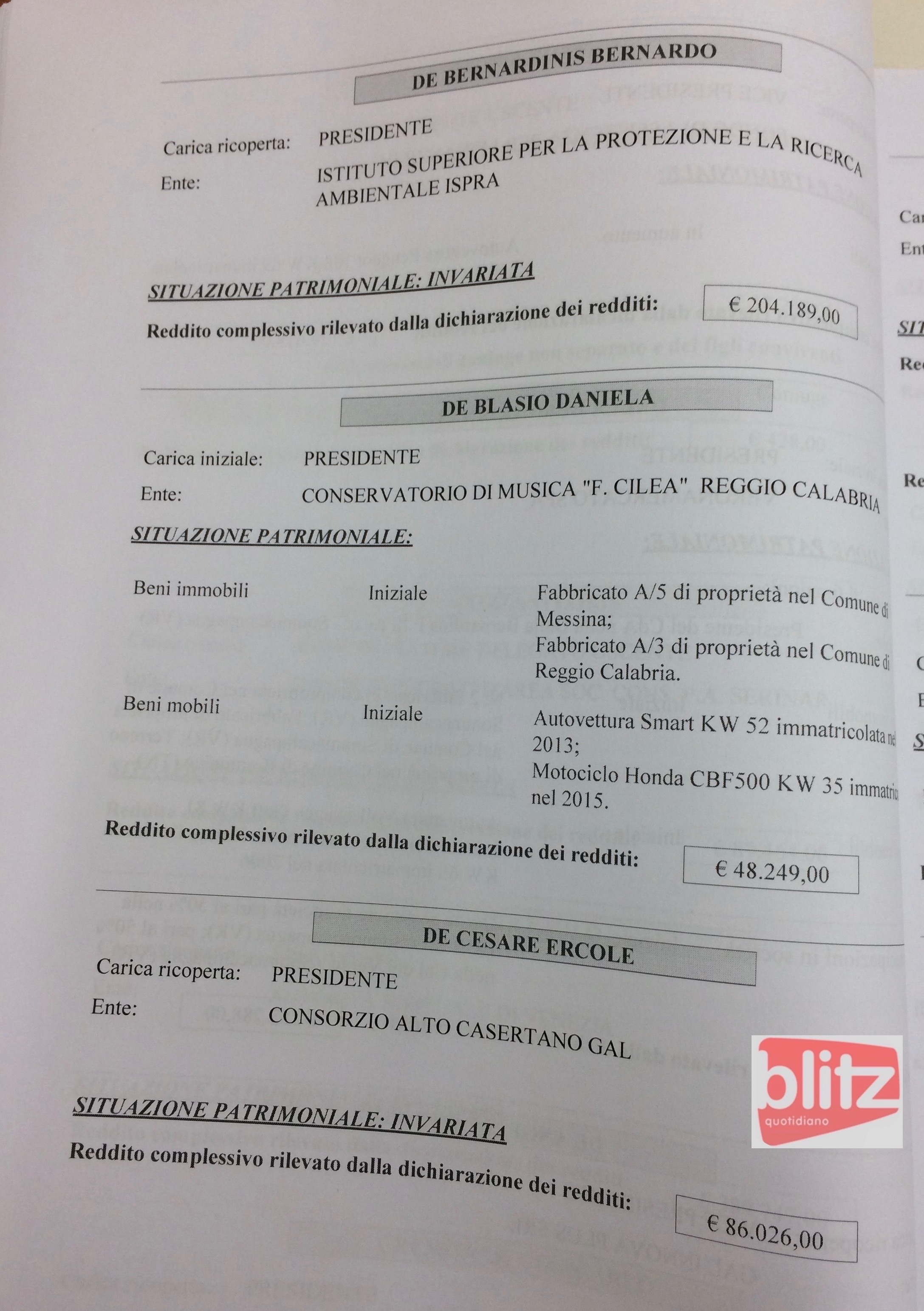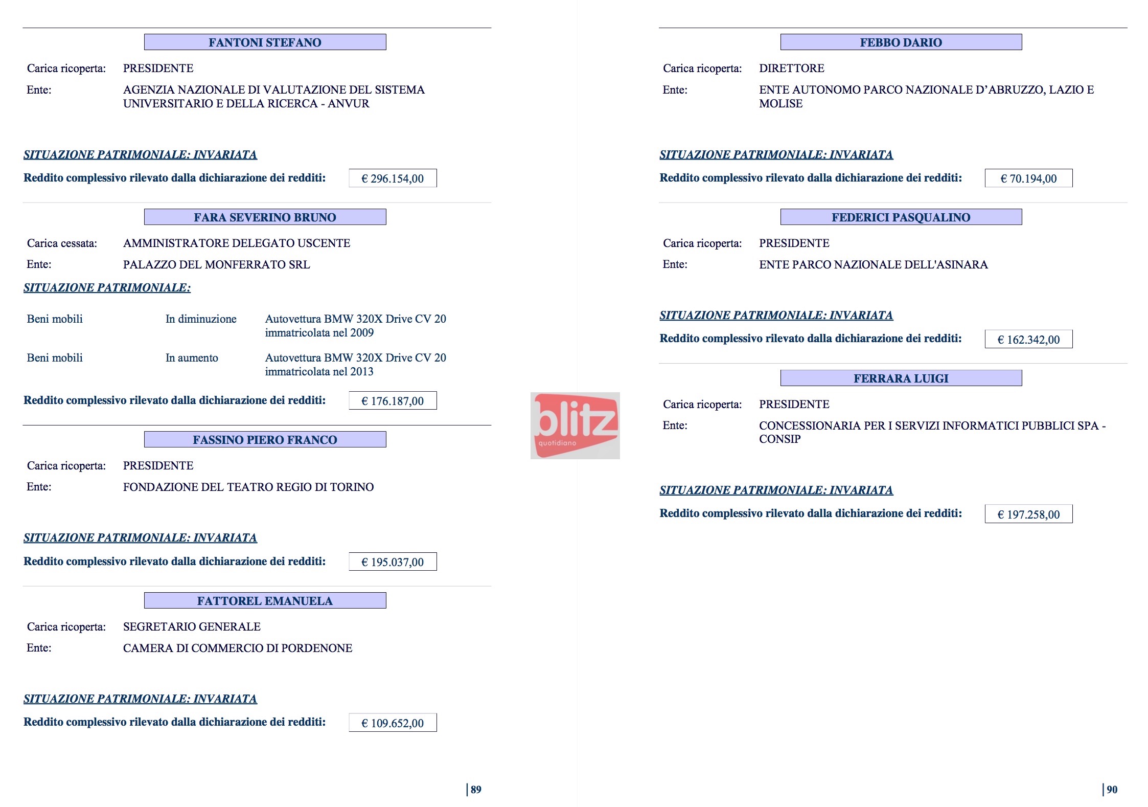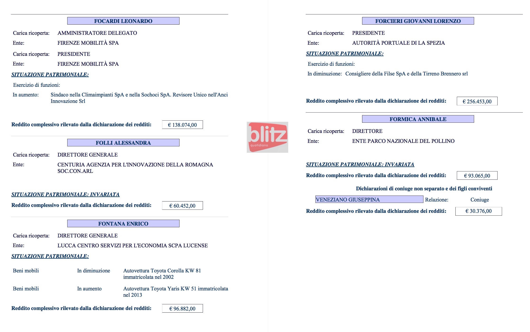 - Annibale Formica Direttore Ente parco nazionale del Pollino 93.065 (Coniuge: Giuseppina Veneziano 30.376)