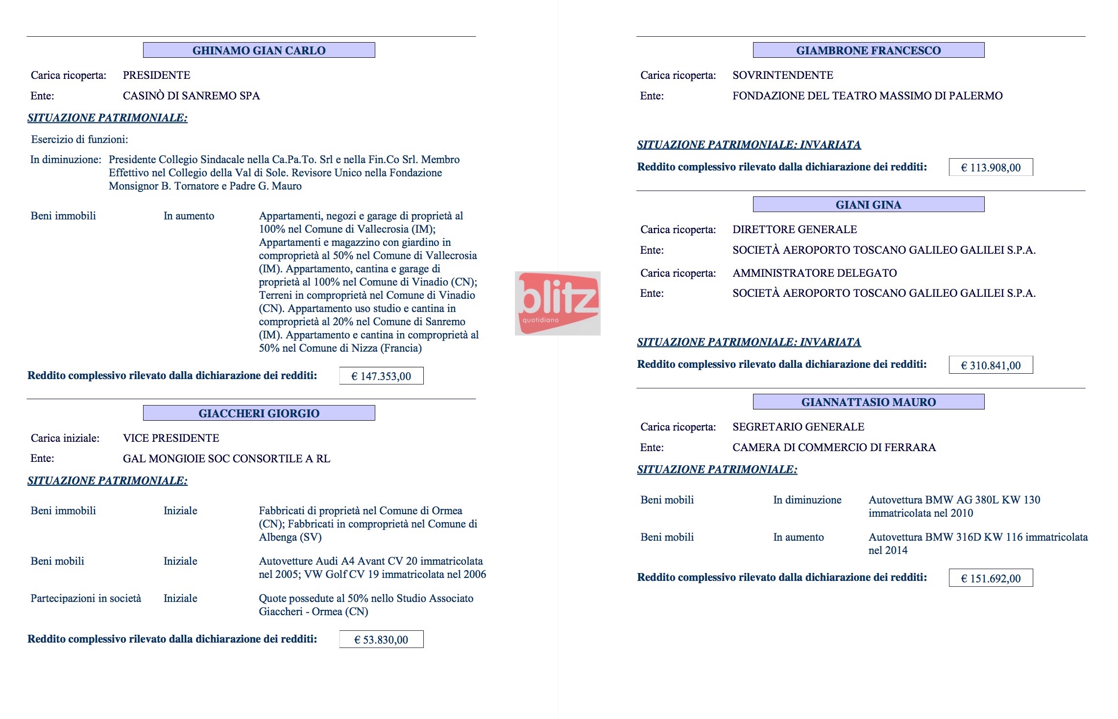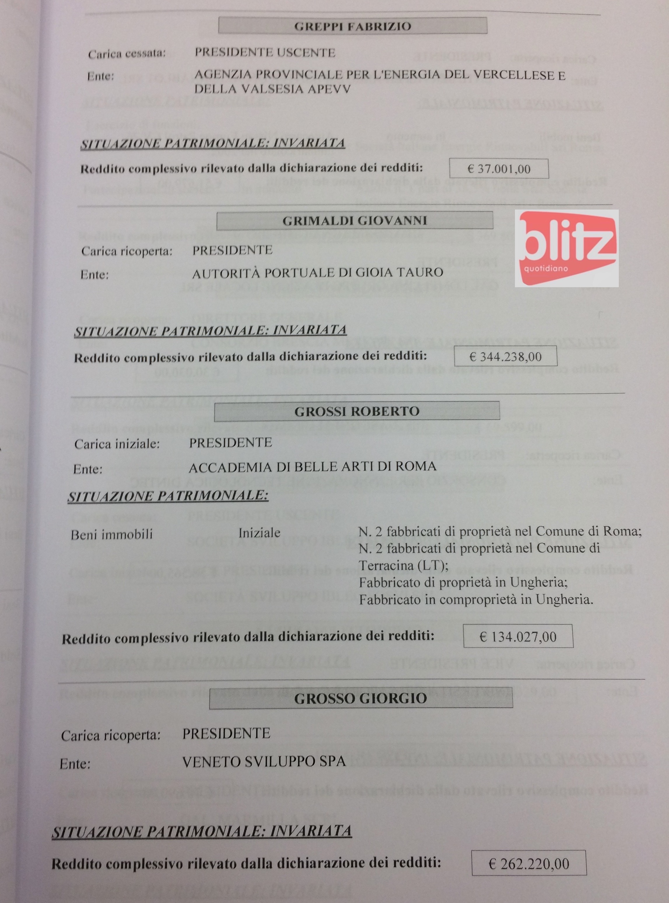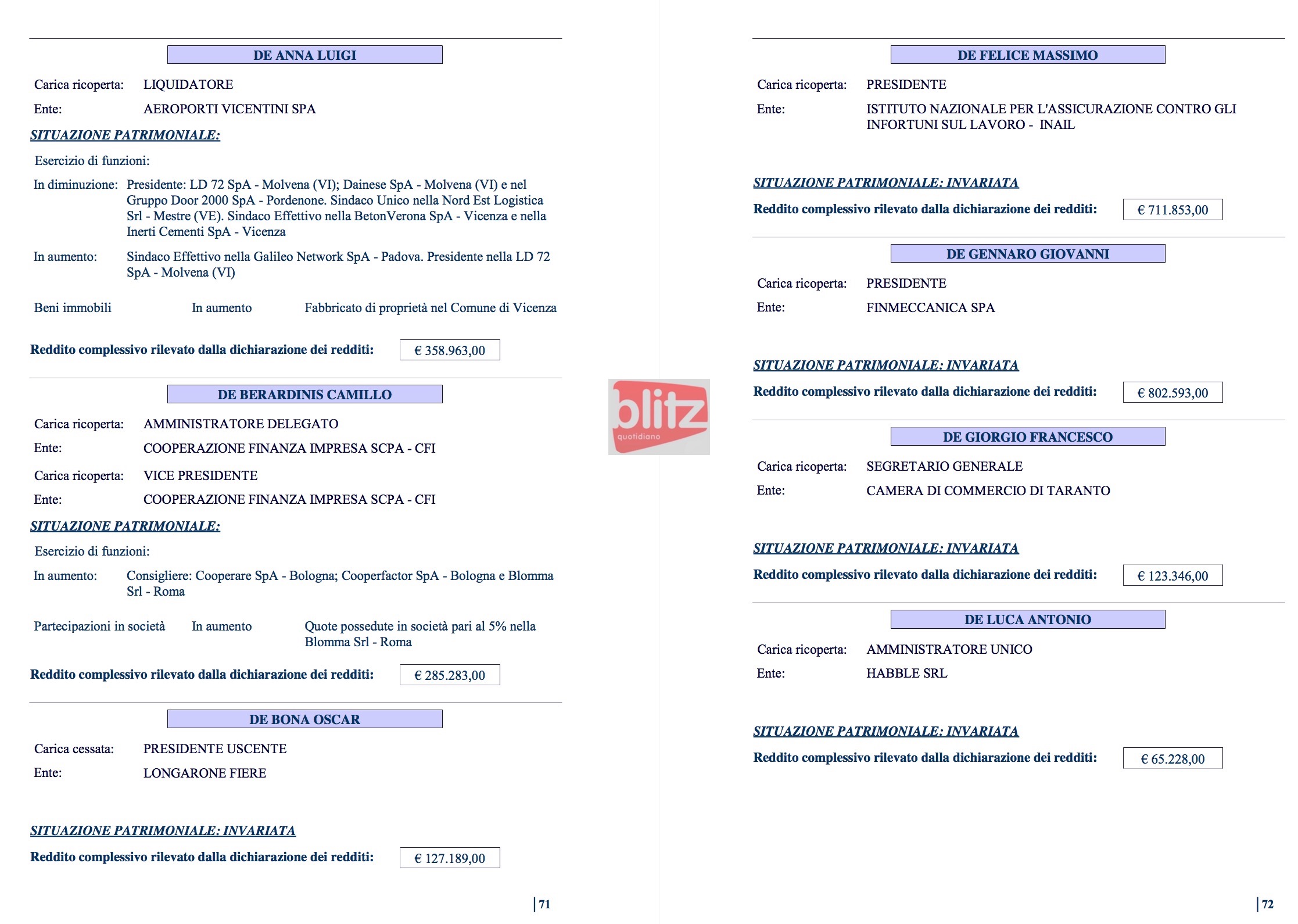 - Annibale Formica Direttore Ente parco nazionale del Pollino 93.065 (Coniuge: Giuseppina Veneziano 30.376)