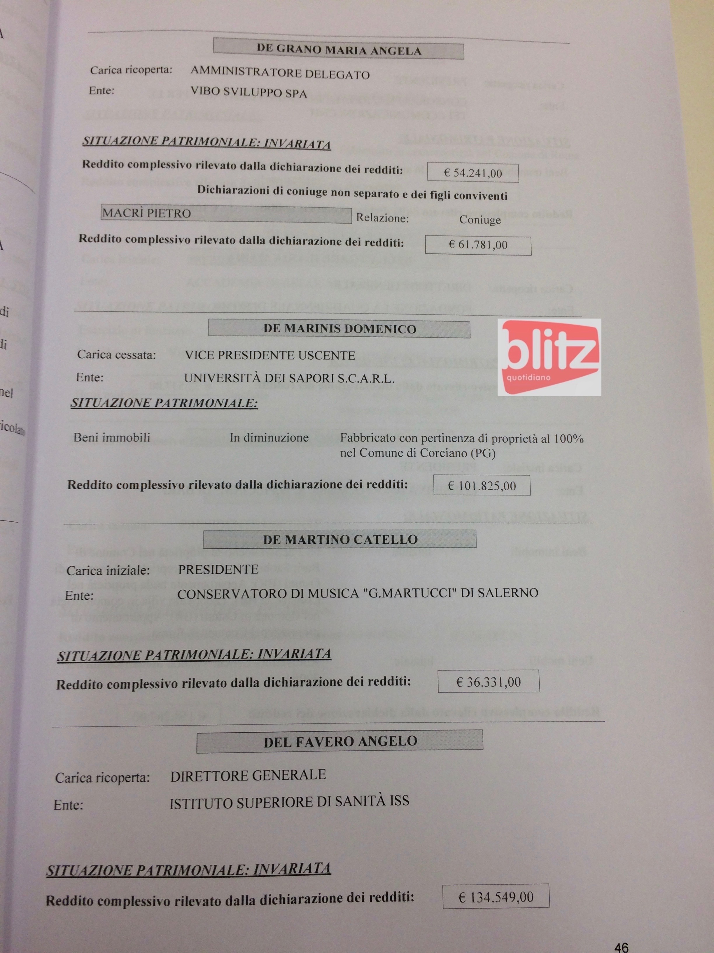 - Maria Angela De Grano Amministratore delegato Vibo Sviluppo Spa 54.241 (Coniuge: Pietro Macrì 61.781)