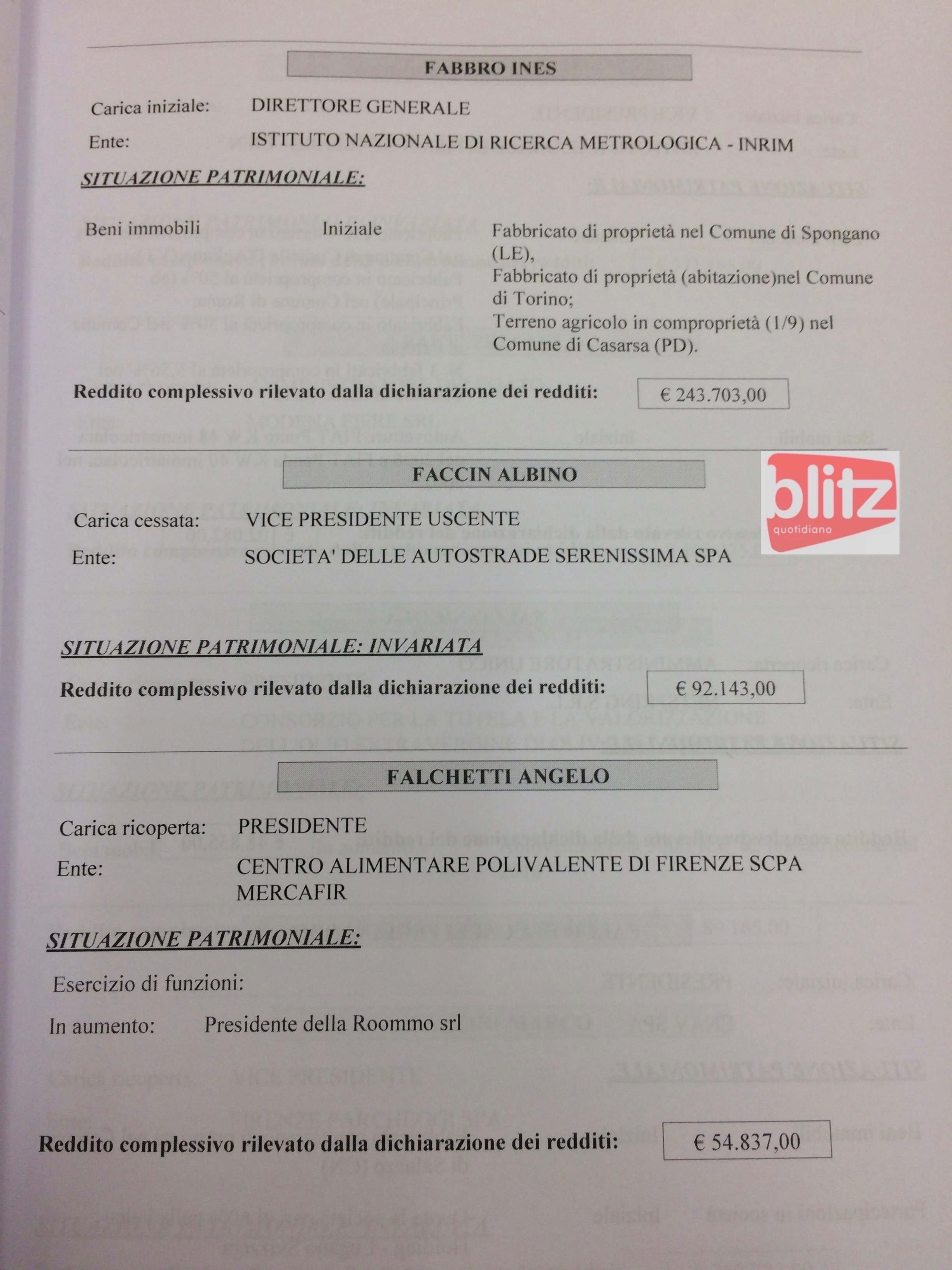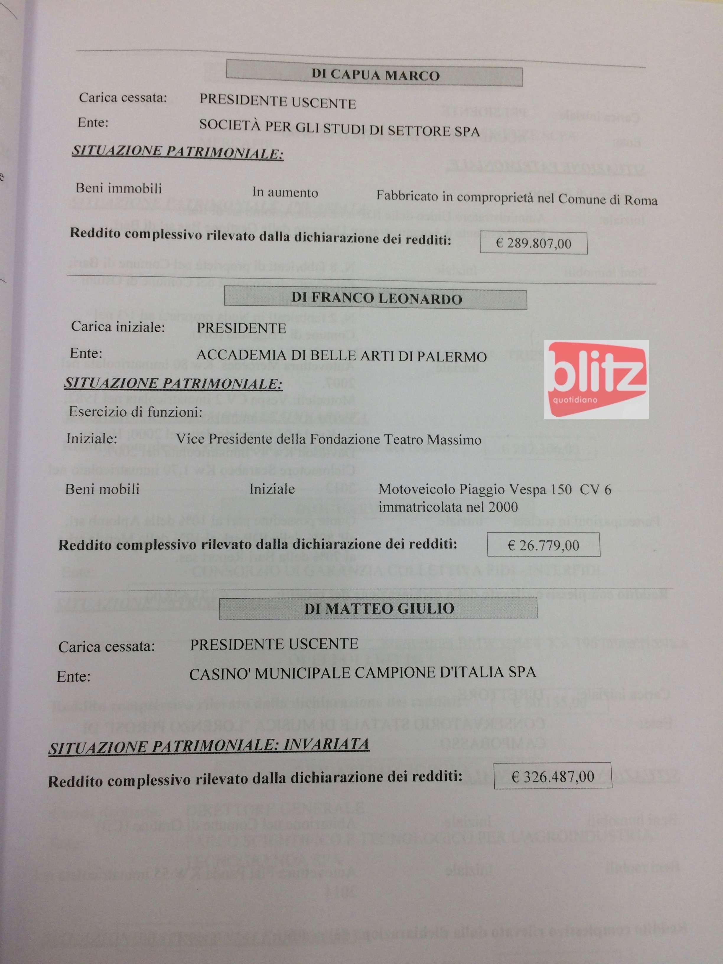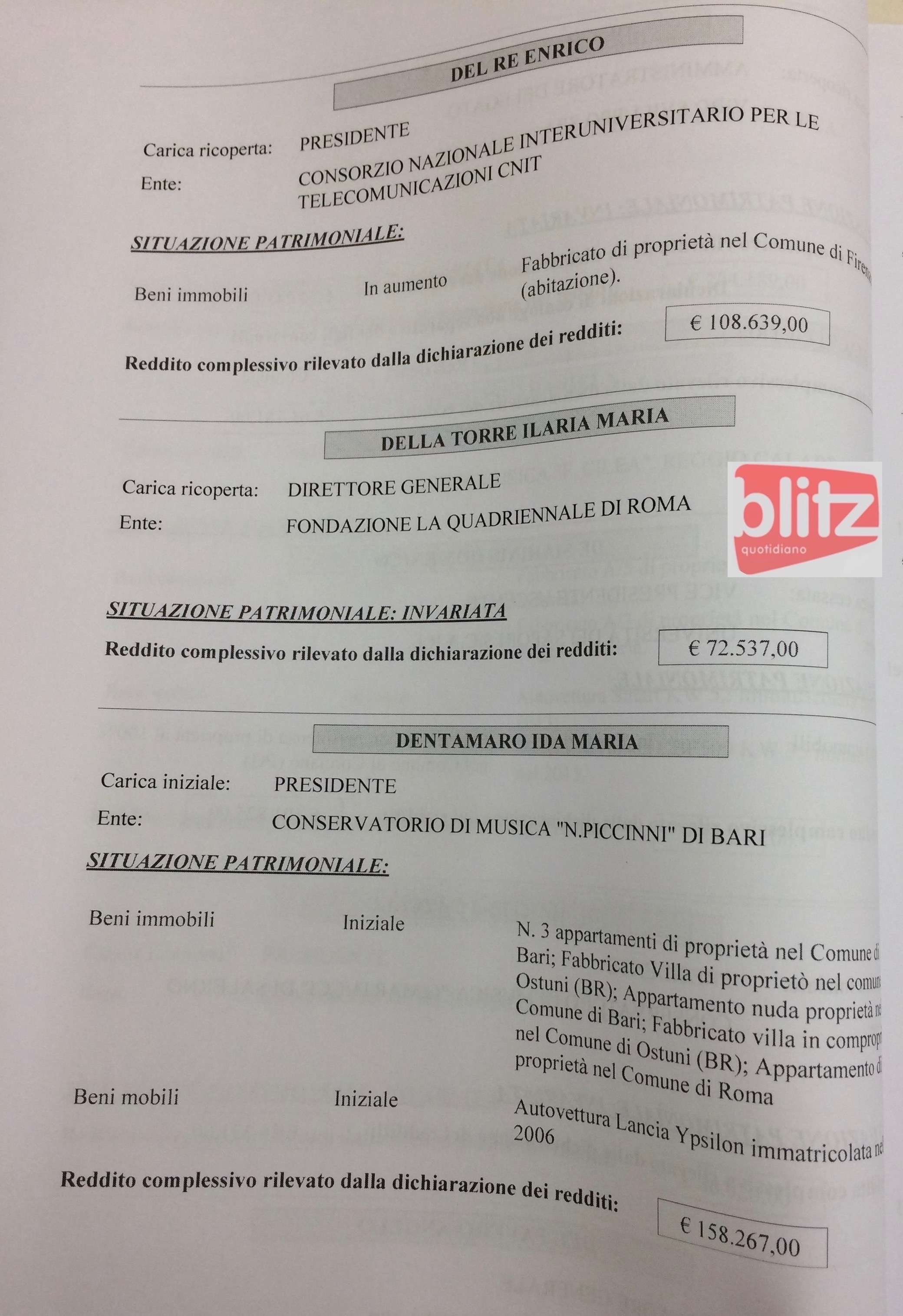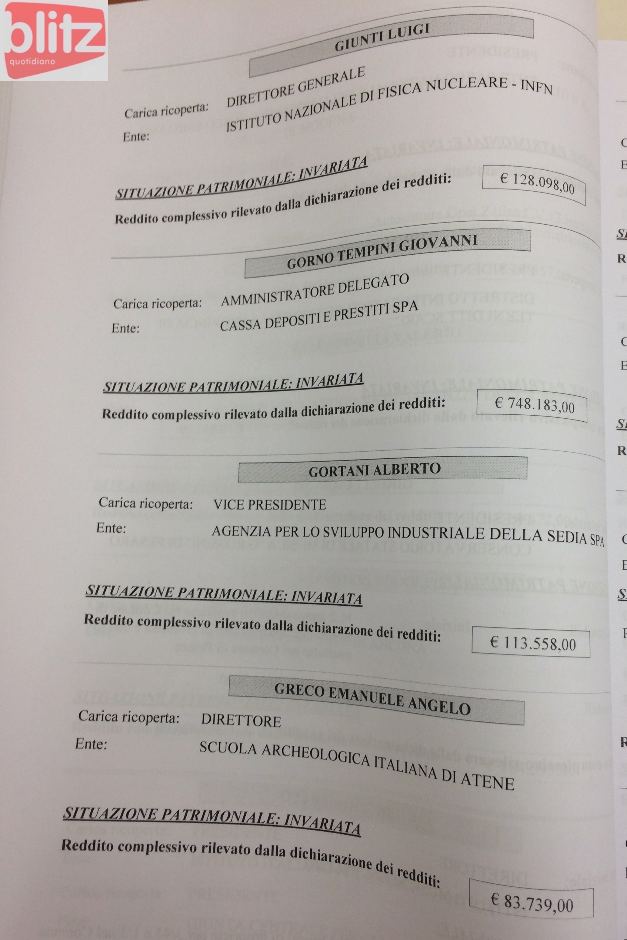 - Paolo D’Alessio Commissario straordinario Istituto per il credito sportivo 223.161 (Coniuge: Giulia Rossi 25.941)