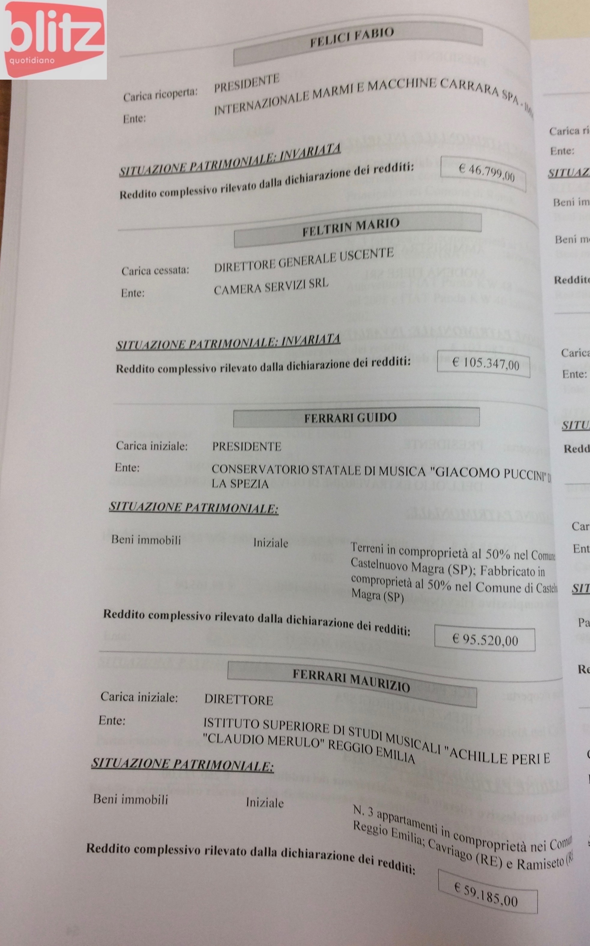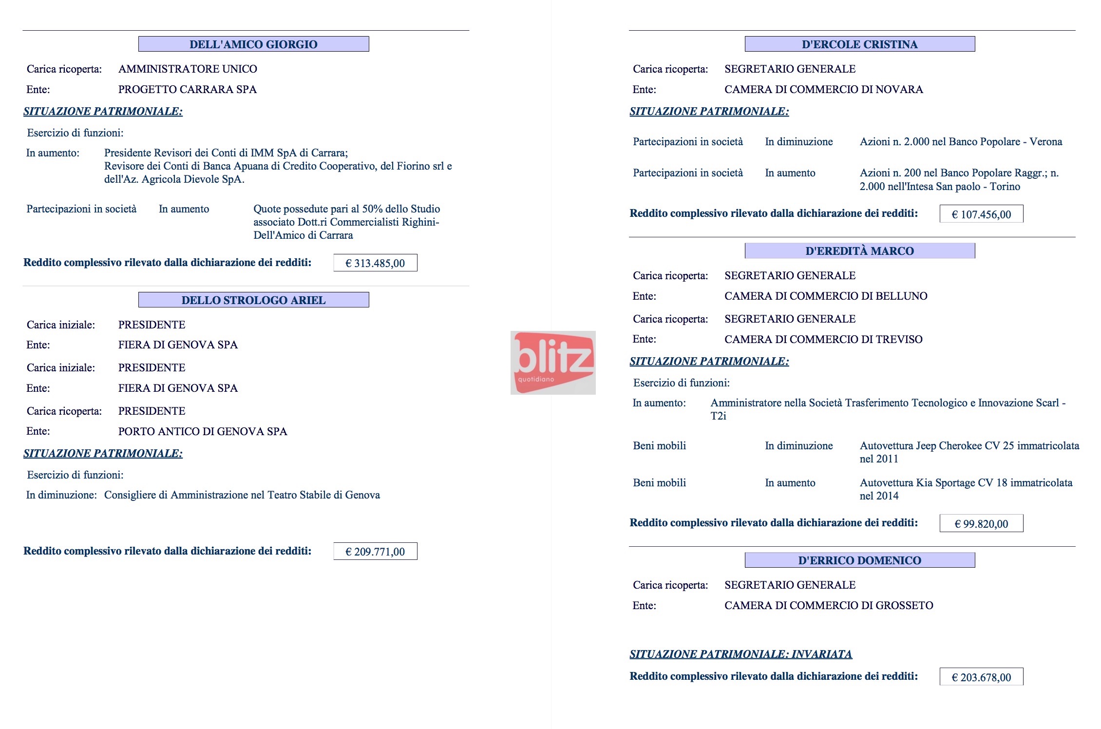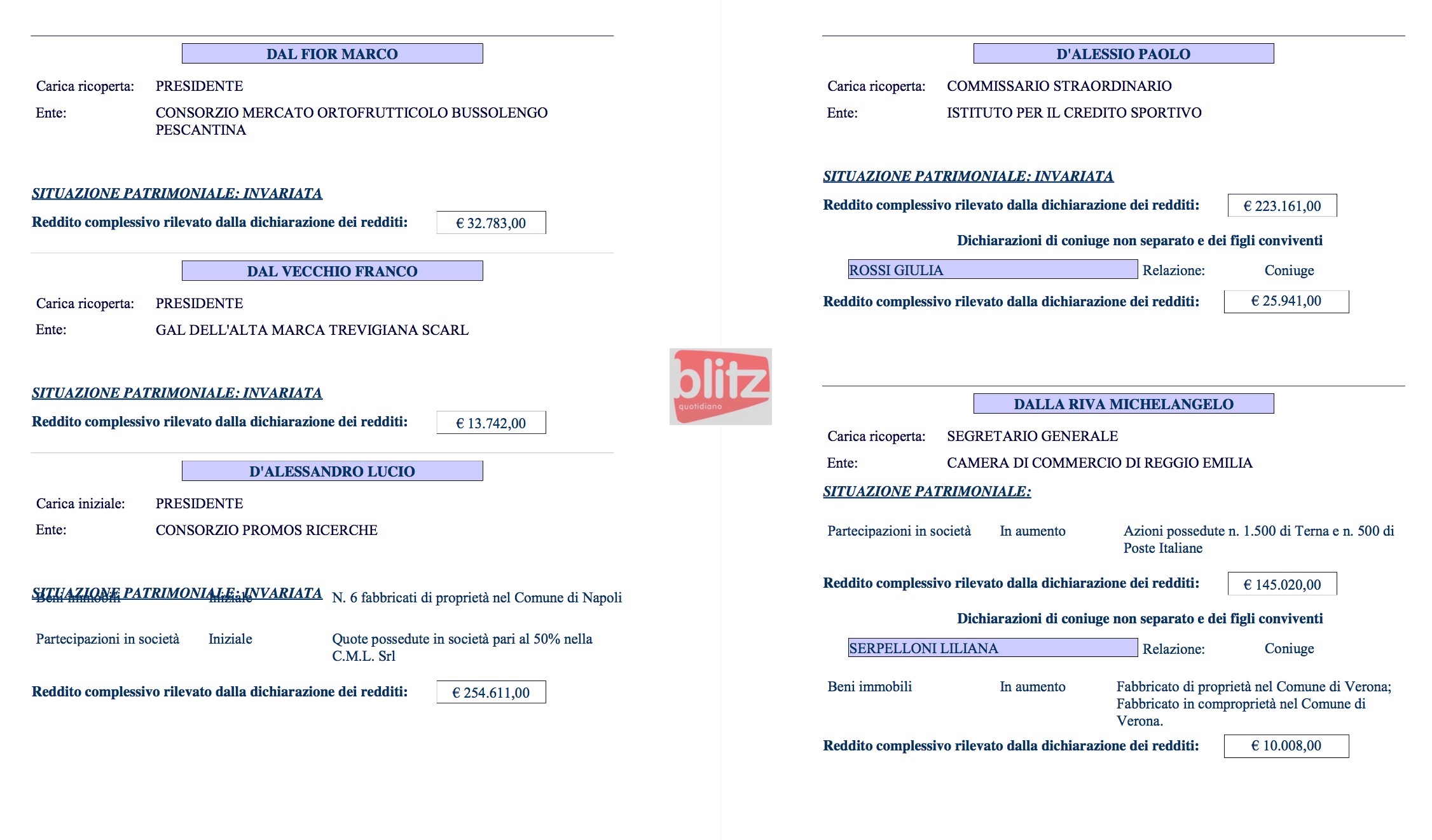 - Michelangelo Dalla Riva Segretario generale Camera di commercio di Reggio Emilia 145.020 (Coniuge: Liliana Serpelloni 10.008)