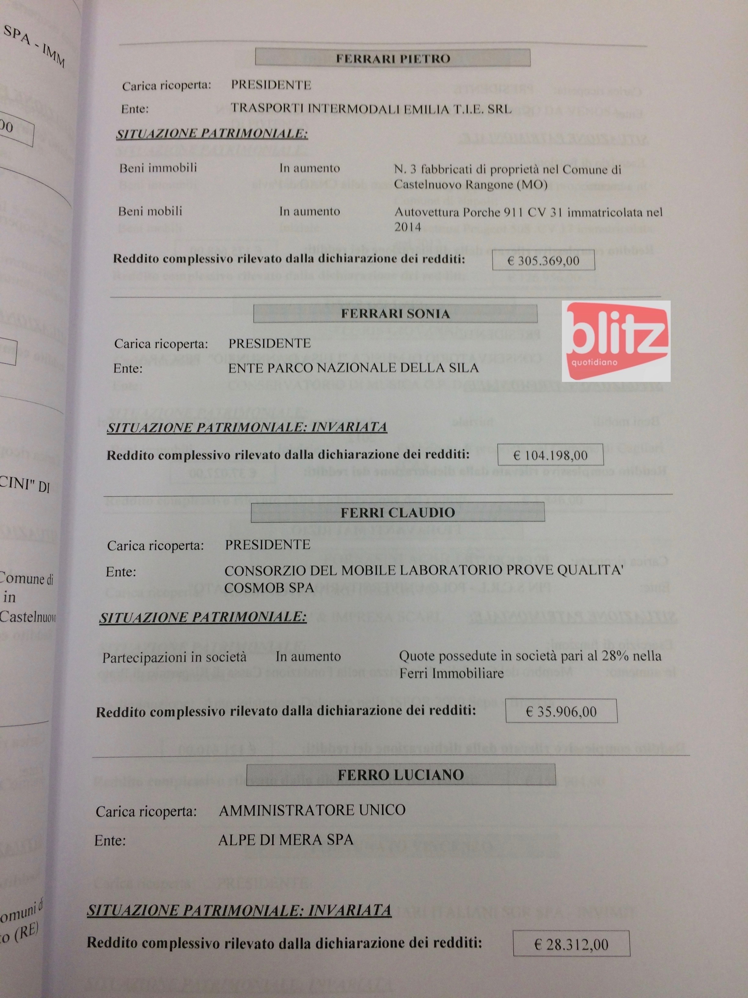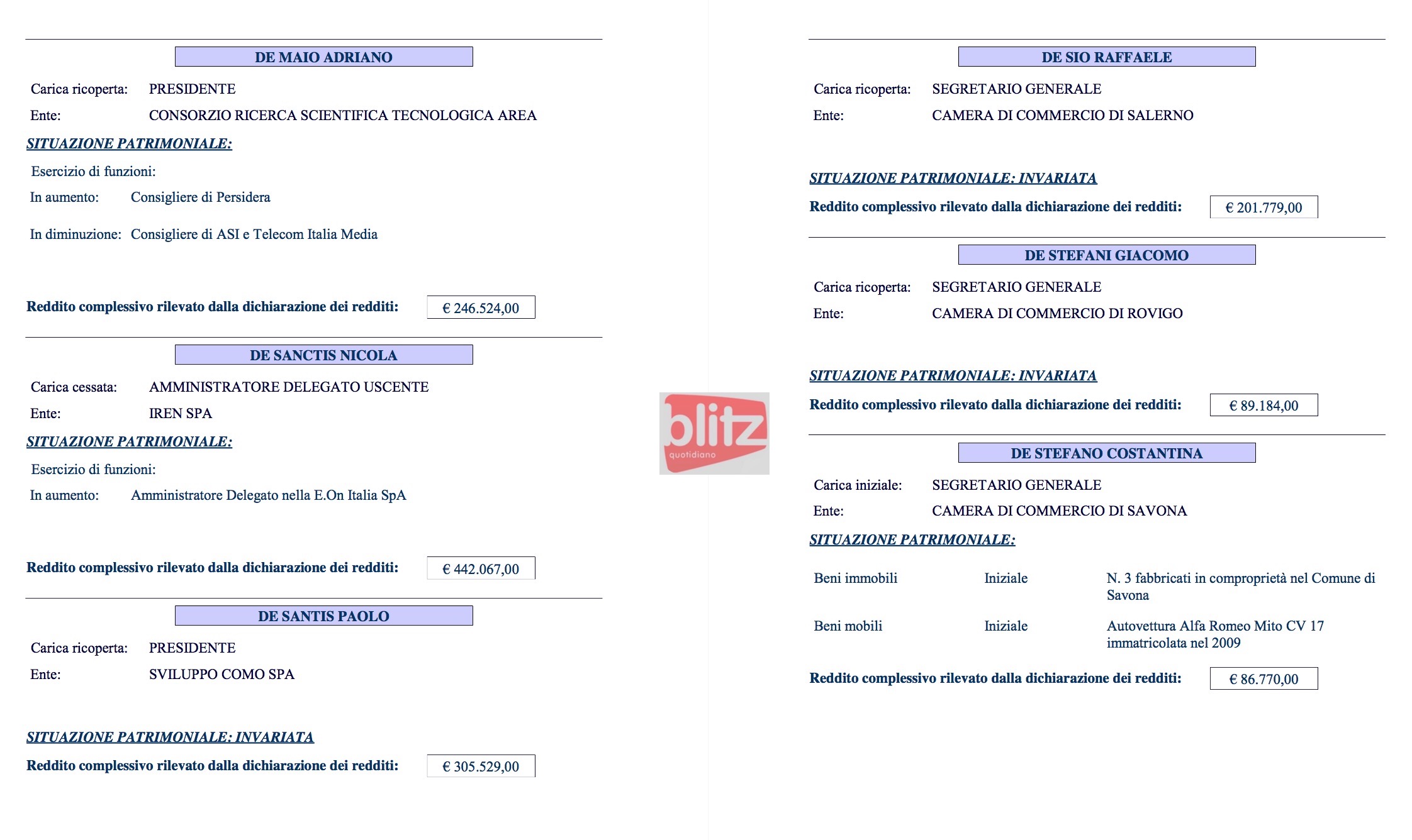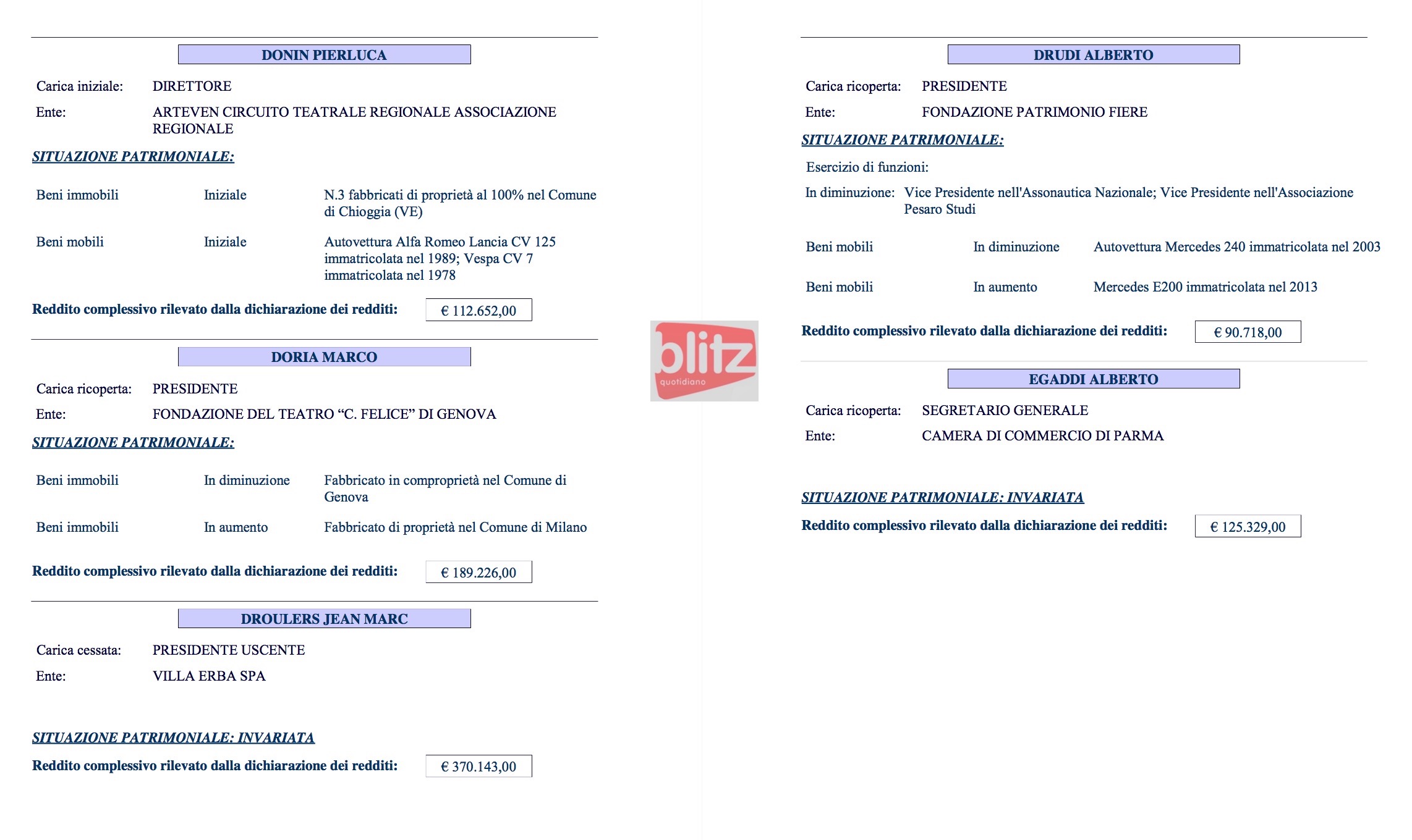 - Michelangelo Dalla Riva Segretario generale Camera di commercio di Reggio Emilia 145.020 (Coniuge: Liliana Serpelloni 10.008)