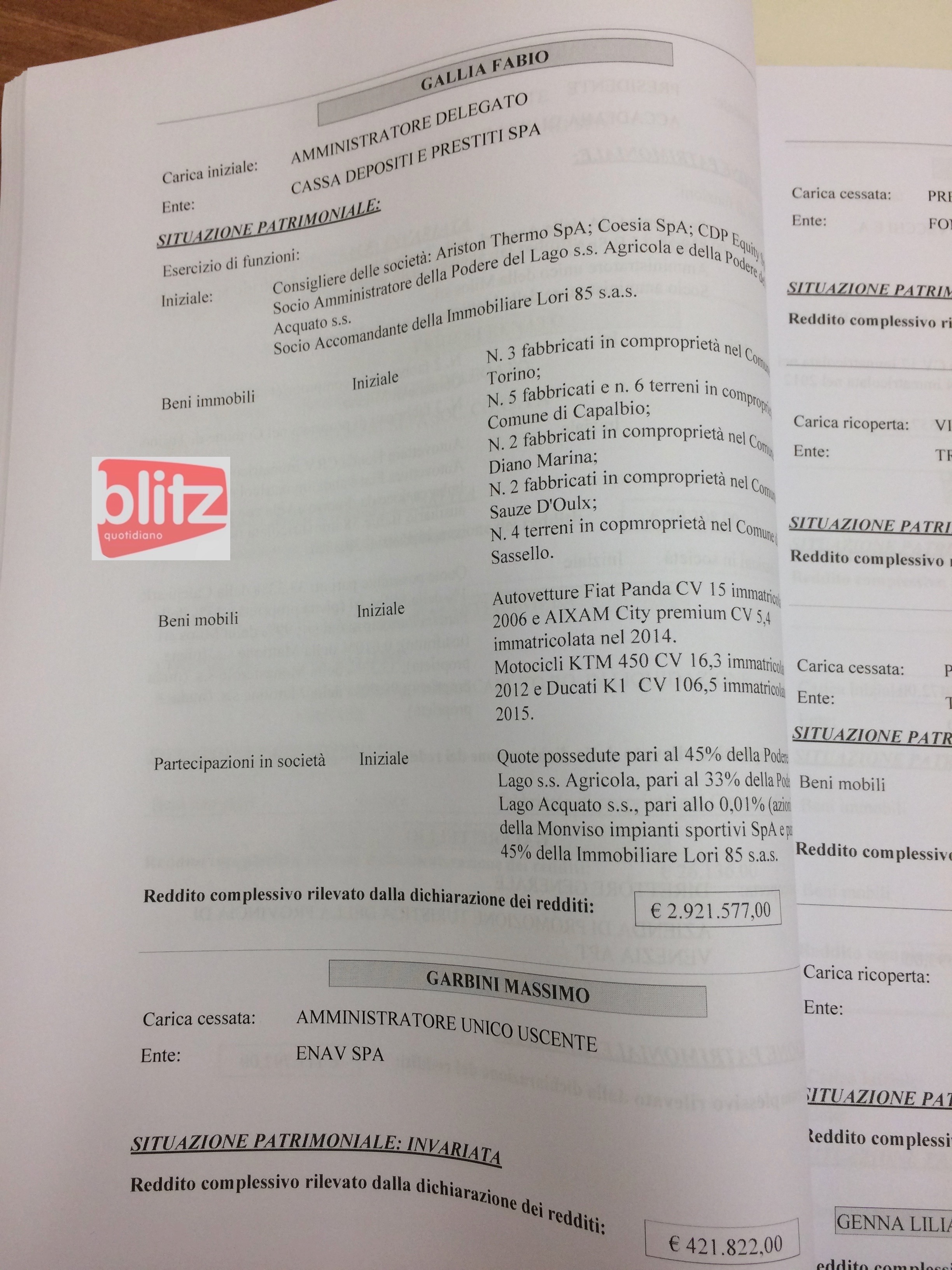 - Fabio Gallia Amministratore delegato Cassa Depositi e Prestiti Spa 2.921.577