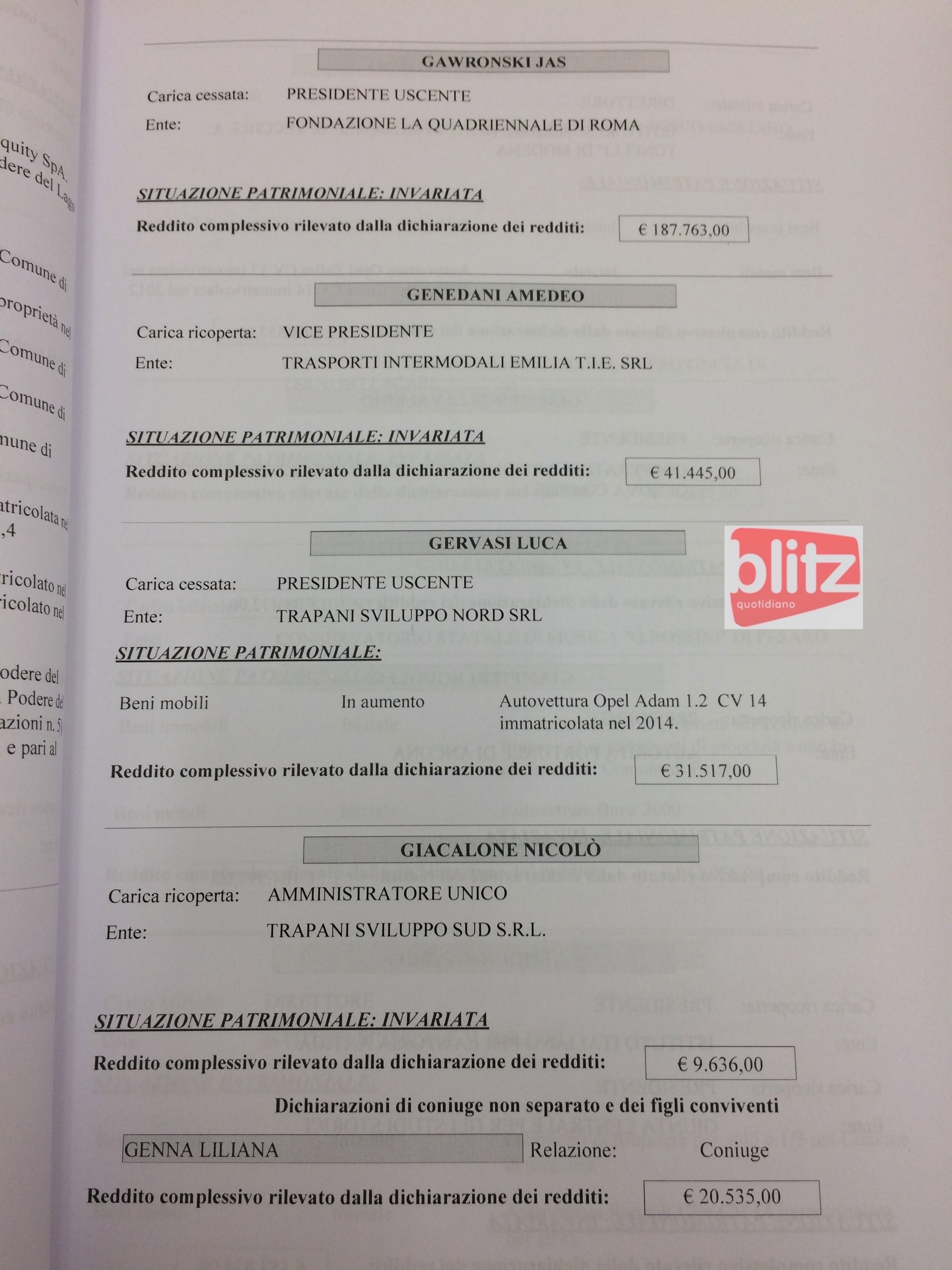 - Nicolò Giacalone Amministratore Unico Trapani Sviluppo Sud Srl 9.636 (Coniuge: Liliana Genna 20.535)
