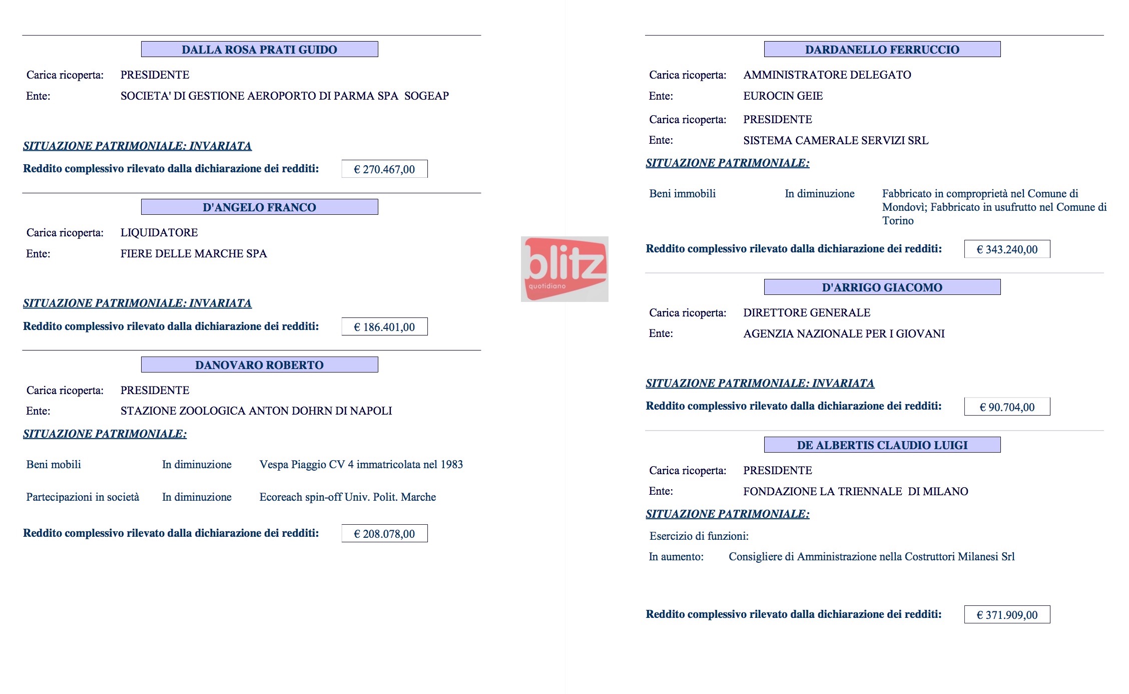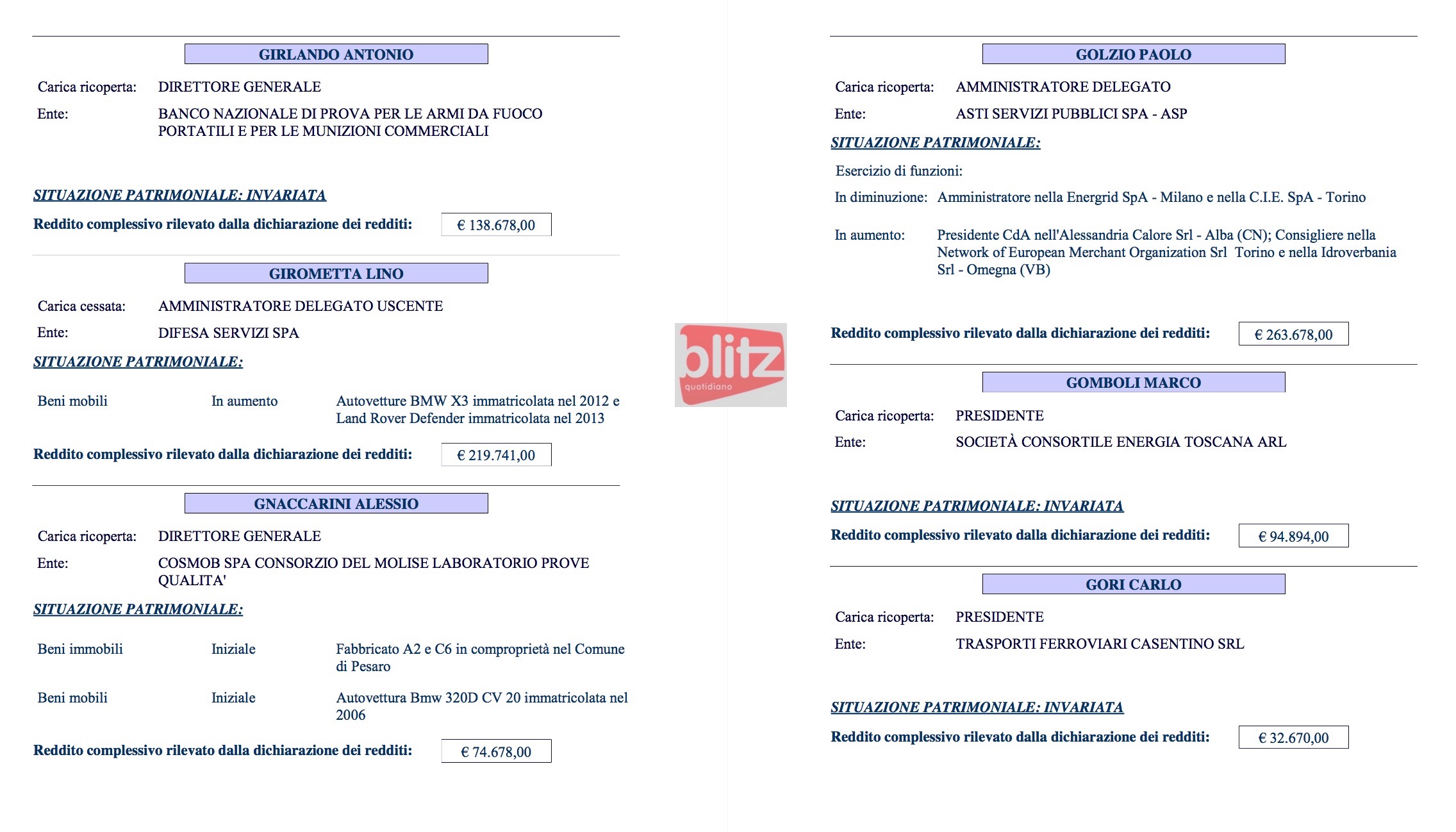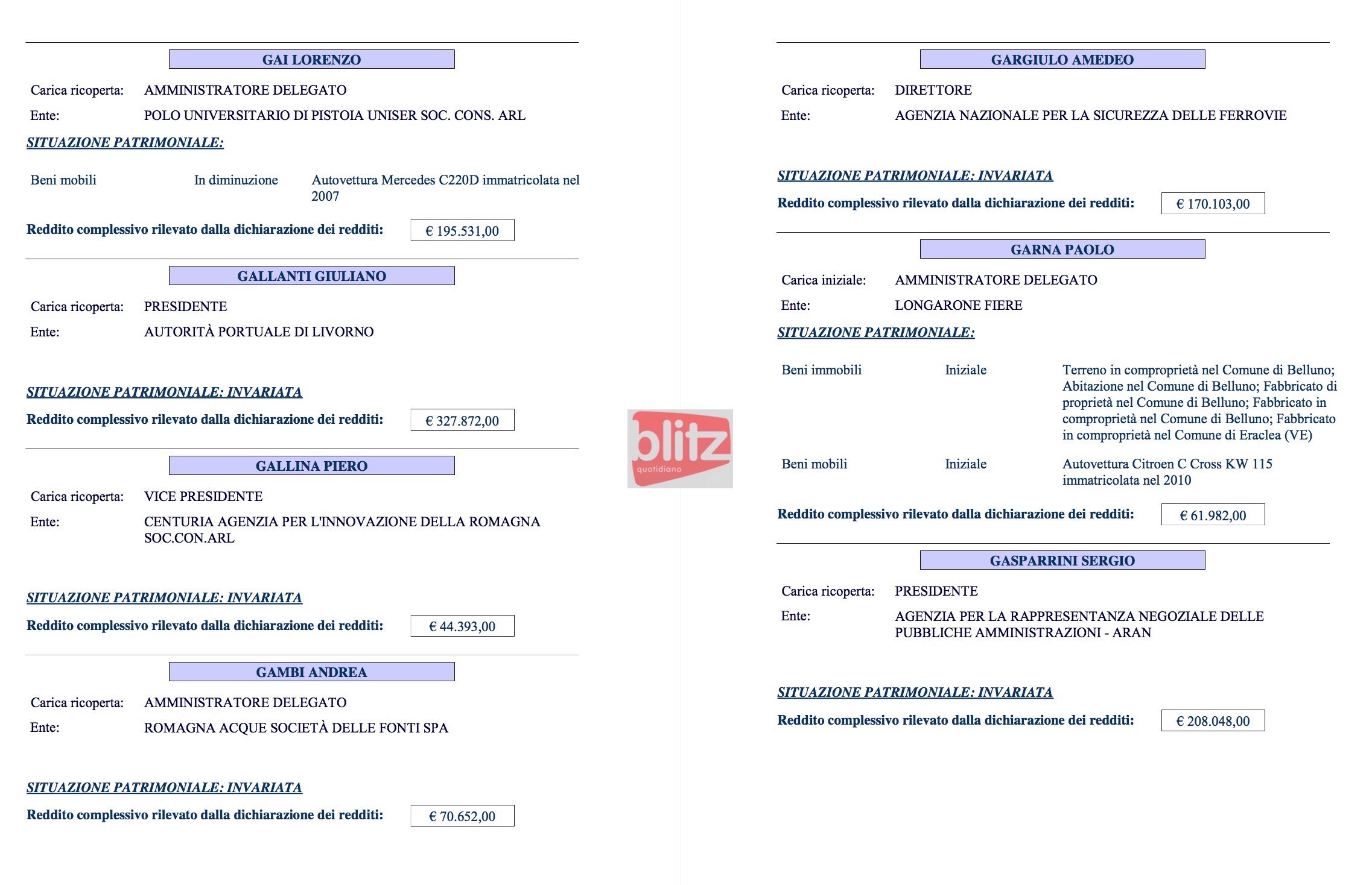 - Redditi dei manager pubblici: elenco completo