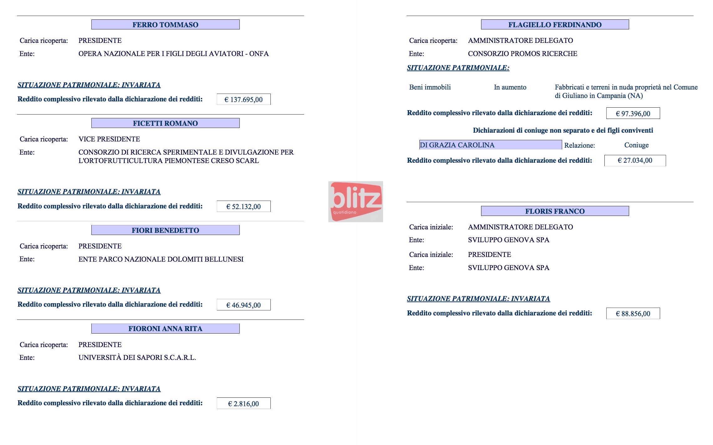 - Ferdinando Flagiello Amministratore delegato Consorzio Promos ricerche 97.396 (Coniuge: Carolina Di Grazia 27.034)
