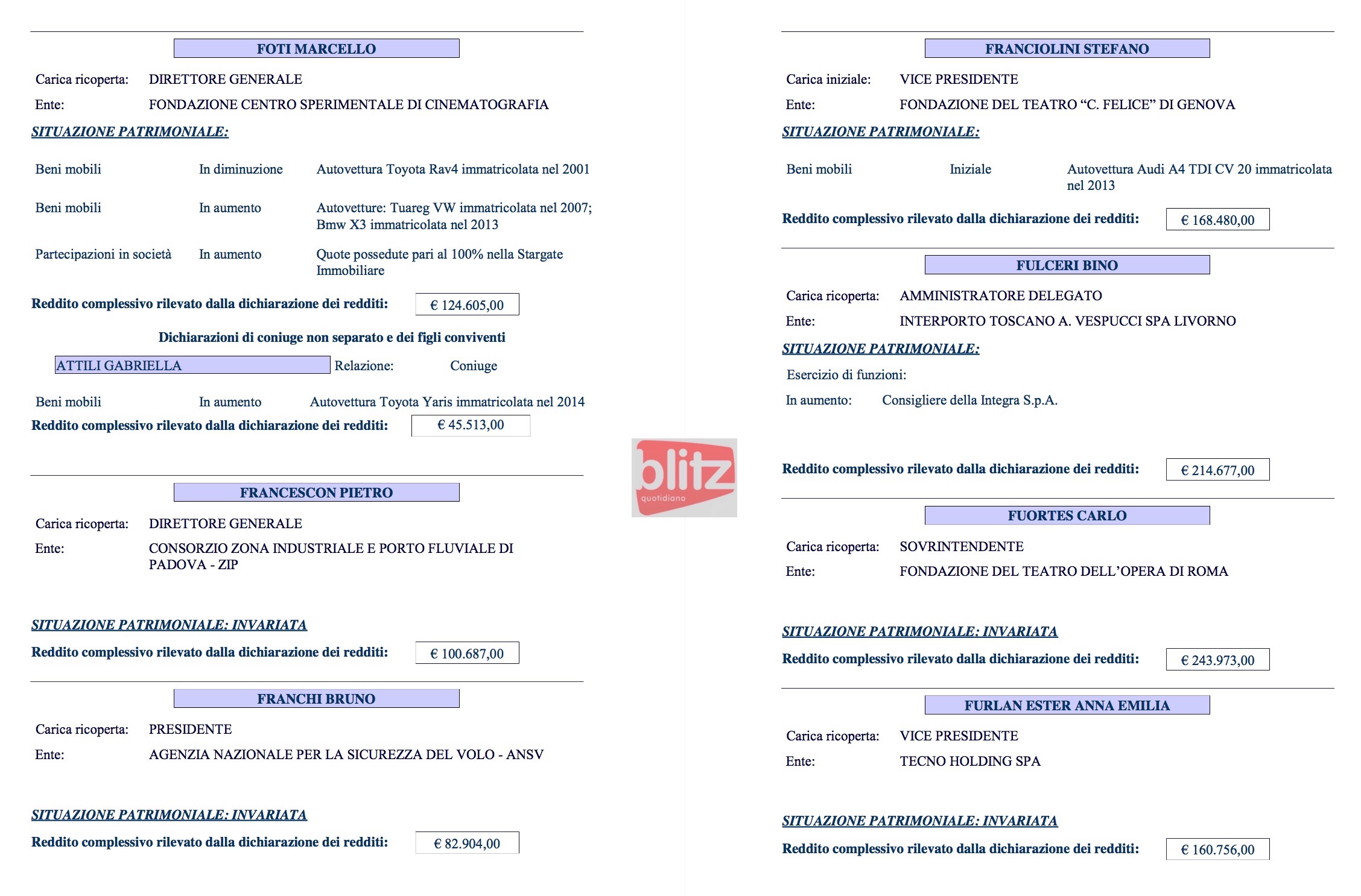 - Marcello Foti Direttore generale Fondazione Centro sperimentale di cinematografia 124.605 (Coniuge: Gabriella Attili 45.513)