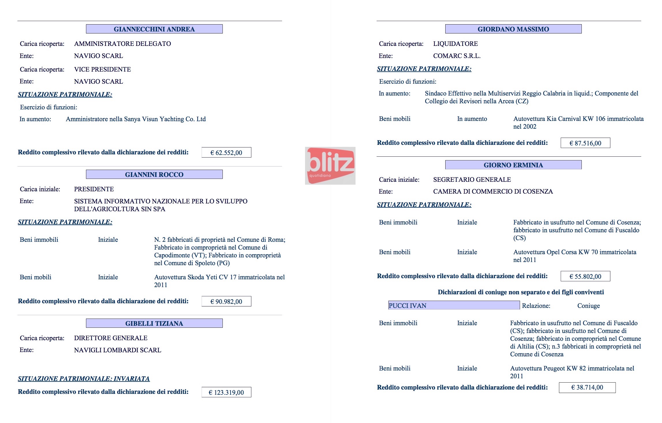 - Erminia Giorno Segretario generale Camera di Commercio di Cosenza 55.802 (Coniuge: Ivan Pucci 38.714)