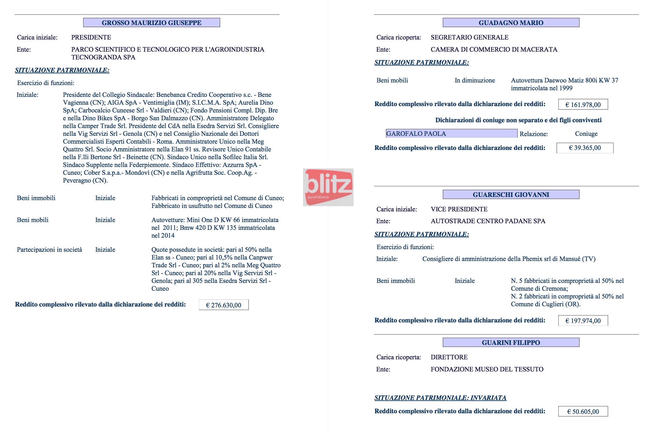 - Mario Guadagno Segretario generale Camera di Commercio di Macerata 161.978 (Coniuge: Paola Garofalo 39.365)