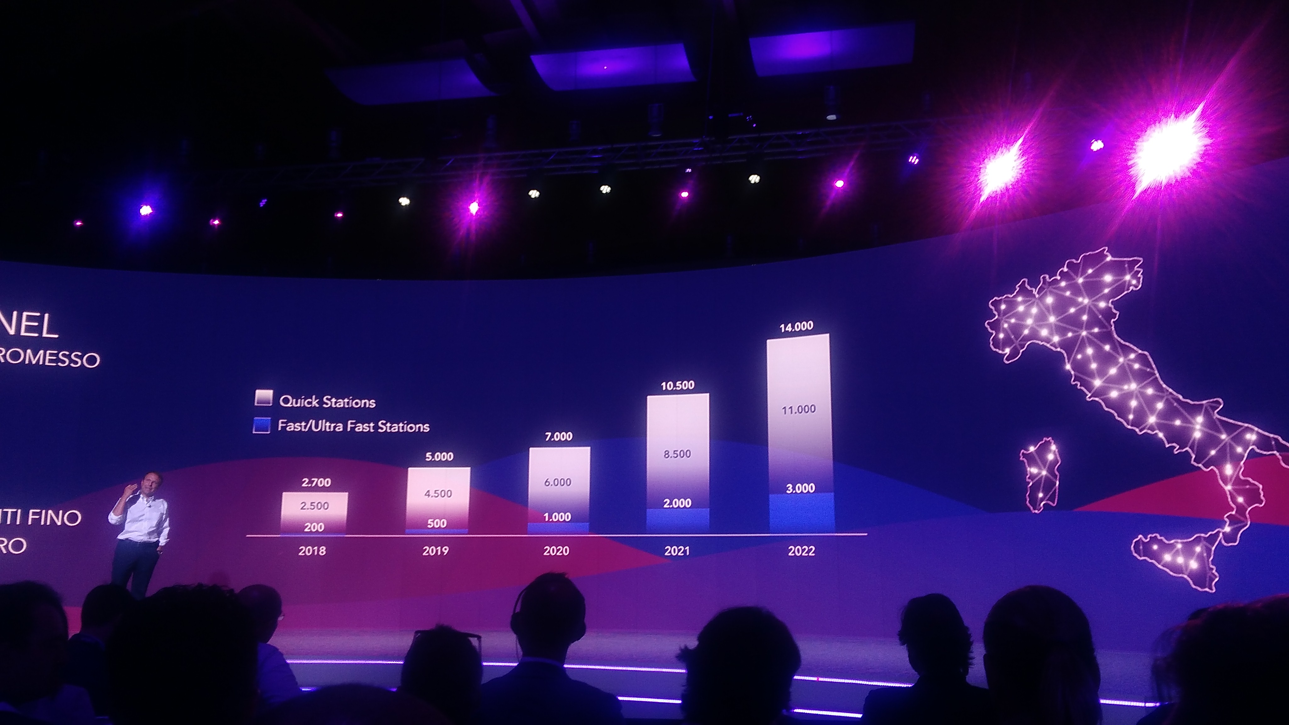 Enel si è impegnata in un piano quinquennale di installazioni di infrastrutture di ricarica nel nostro paese: 14.000 colonnine entro il 2022 per un investimento complessivo fino a 300 milioni di euro. Il piano Enel prevede una copertura capillare in tutte le regioni italiane.