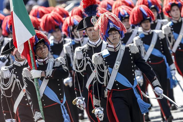 Passaggio Carabinieri in via dei Fori Imperiali durante le celebrazioni per il 71° anniversario della proclamazione della Repubblica a Roma, 2 Giugno 2017, ANSA/GIUSEPPE LAMI