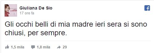 Momenti in cui la madre le è stata vicina e ora Giuliana De Sio, con un semplice post su Facebook, ha commosso fan e colleghi comunicando la scomparsa della sua mamma: