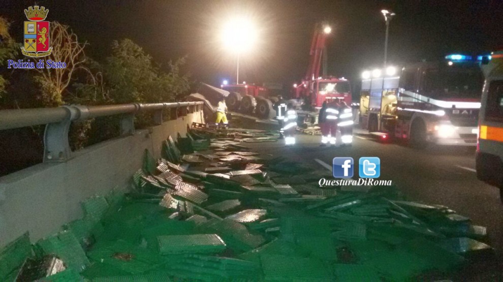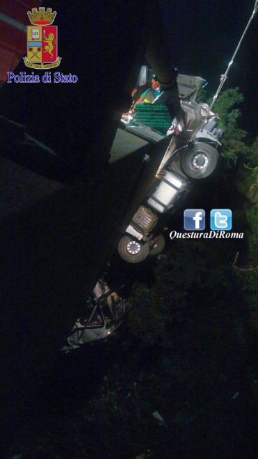 All’arrivo dei soccorsi effettuati dagli agenti della polstrada di Roma nord, il rimorchio era rovesciato sulla carreggiata, mentre la cabina del mezzo pendeva sul viadotto, ad un altezza di oltre 80 metri, con l’uomo ancora a bordo.
