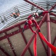 La struttura d’acciaio, progettata da Anish Kapoor e Cecil Balmond, è stata realizzata nel 2012 in parte con fondi dell’azienda Arcelor Mittal. La forma della torre è ispirata a quella del dna. L’esecuzione degli acrobati si è svolta nei giorni scorsi e fanno parte delle celebrazioni di apertura della torre (foto LaPresse)
