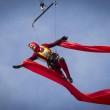 LONDRA – Alcuni acrobati ciondolano a 80 metri di altezza dalla ArcelorMittal Orbit, la torre di osservazione alta 115 metri situata nel Parco Olimpico di Londra a Stratford.