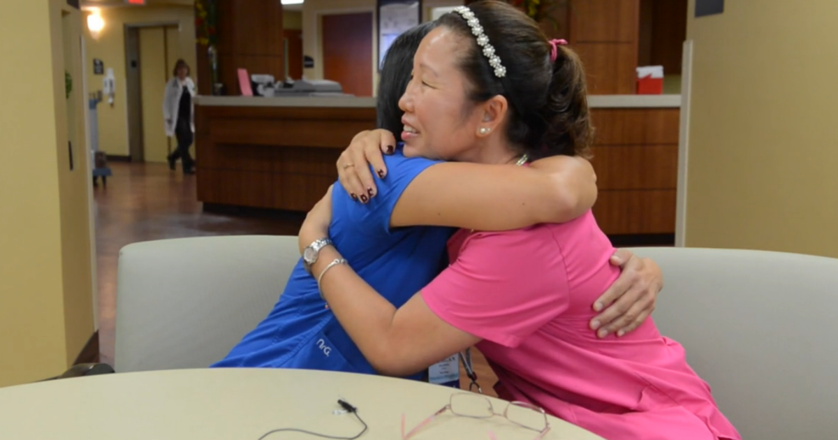 Una è cresciuta in Virginia e l’altra a New York: dopo essersi messe entrambe a cercare lavoro, per caso sono state assunte tutte e due in un ospedale di Sarasota in Florida come assistenti: un giorno, mentre entrambe erano nel turno delle 7.30, hanno iniziato a chiacchierare e confrontando le loro storie, è nato il sospetto: un test del dna ha poi confermato la parentela.
