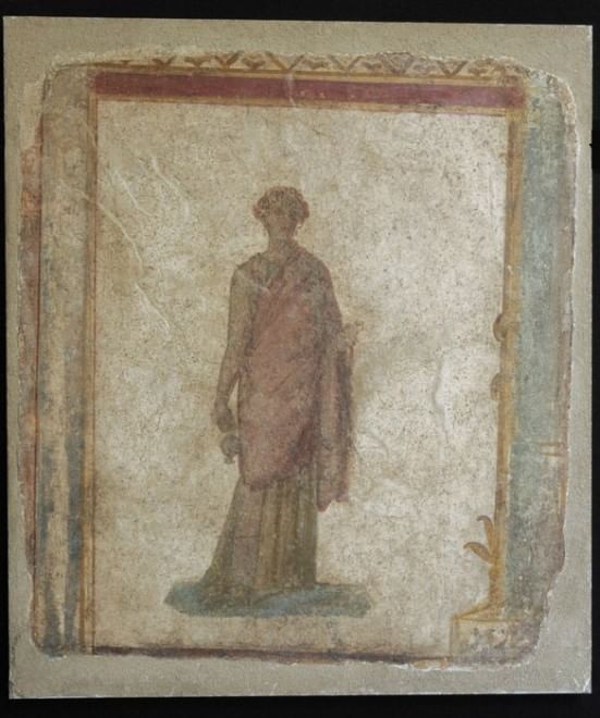 Nel 1957 erano stati rubati dall’ufficio Scavi della Soprintendenza Archeologica di Pompei insieme con altri tre affreschi poi recuperati dai carabinieri dei beni culturali, nel corso degli anni, in Europa e negli Stati Uniti. Si tratta di un affresco con un pavone, ritrovato in Svizzera, di un ritratto di Dioniso che era finito in Gran Bretagna e infine di una Ministra sacrificante recuperata negli Stati Uniti.