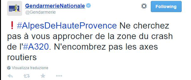 “Tutti i dipendenti della GermanWings e di Lufthansa esprimono profondo rammarico e offrono le loro preghiere perย le famiglie e gli amici dei passeggeri e i membri dell’equipaggio”. Poi la nota continua in inglese: “Abbiamo appreso dai media la notizia dell’incidente ma aspettiamo ancora conferme ufficiali. Si prega di consultare il nostro sito per restare aggiornati”.