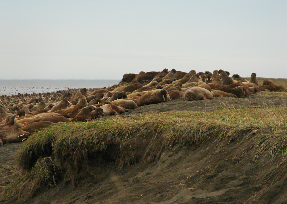 I trichechi fuggono così dalle acque sempre più calde dell’Oceano e dai ghiacci che si sciolgono, trovando riparo sulla spiaggia vicina a Point Lay, dove nell’ottobre 2013 si riunì un altro gruppo di 10mila trichechi.