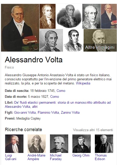 Cliccando sul Doodle si viene indirizzati alla ricerca di Alessandro Volta su Google e si scopre così che il fisico, nato il 18 febbraio 1745 a Como, morì nel 1827. Google ha così deciso a 270 anni dalla sua nascita di rendergli omaggio e piuttosto che usare il suo ritratto, che Mark Holmes ha comunque realizzato per una versione alternativa del Doodle, ha scelto di rappresentare un motore che si illumina grazie alla pila.