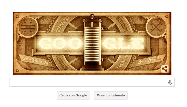 ROMA – Una dorata pila elettrica che si illumina. Questo il doodle di Google del 18 febbraio per celebrare il 270° anniversario della nascita di Alessandro Volta, fisico italiano celebre per aver inventato la pila, antenata delle batterie, il primo generatore elettrico e aver scoperto il metano.