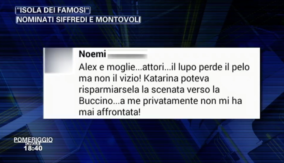 “Alex e moglie – si legge in un altro post – attori… Il lupo perde il pelo ma non il vizio! Katarina poteva risparmiarsela la scenata verso la Buccino… A me privatamente non mi ha affrontata” Guarda il servizio sul sito ufficiale di Mediaset.