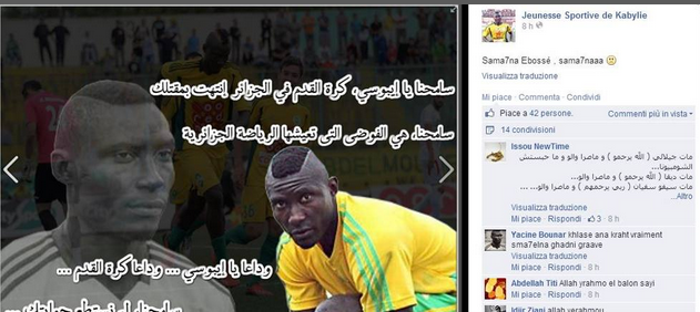La polizia ha aperto un’inchiesta. Ebosse era arrivato al Js Cabilia l’anno scorso e con 17 reti in 31 presenze era stato il capocannoniere del campionato algerino.