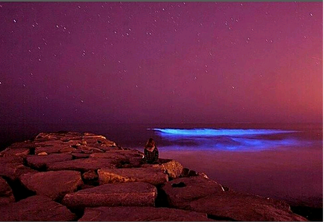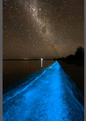 Si tratta della fioritura delle alghe dinoflagellate unicellulare della specie “Noctiluca scintillans” che avviene poco prima dell’inizio della primavera nell’emisfero australe. Già il nome delle alghe rende bene l’idea di cosa si tratti. Il fenomeno, in realtà è ben conosciuto in oceano aperto e molto più raro presso le spiagge, specie se frequentate.