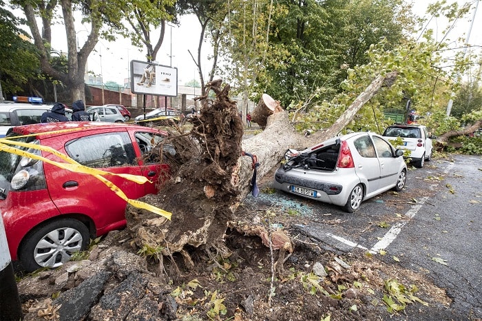 L’episodio più drammatico è avvenuto all’Eur dove un vigile del fuoco di 50 anni è rimasto gravemente ferito dalla caduta di un albero alla Montagnola. L’uomo stava tagliando un ramo in via Tommaso Odescalchi 14 quando un pezzo di tronco gli è crollato addosso colpendolo sulla testa e sulla schiena ed ora è ricoverato in codice rosso in ospedale.