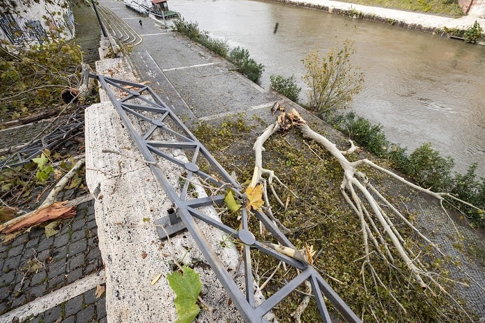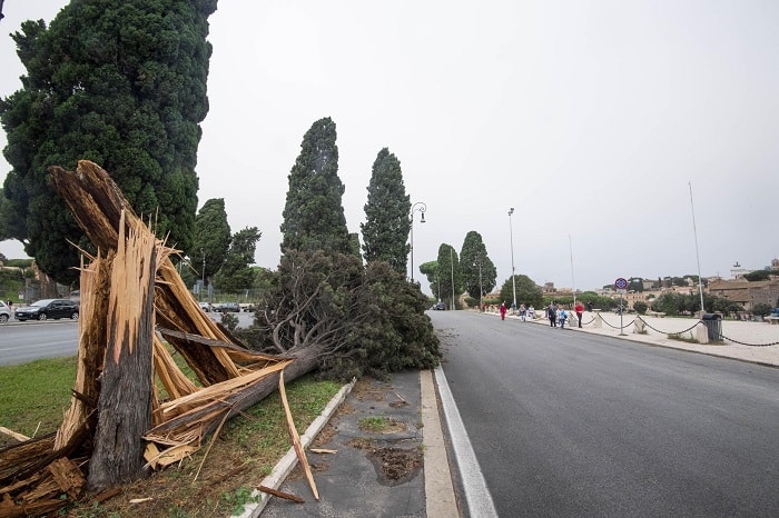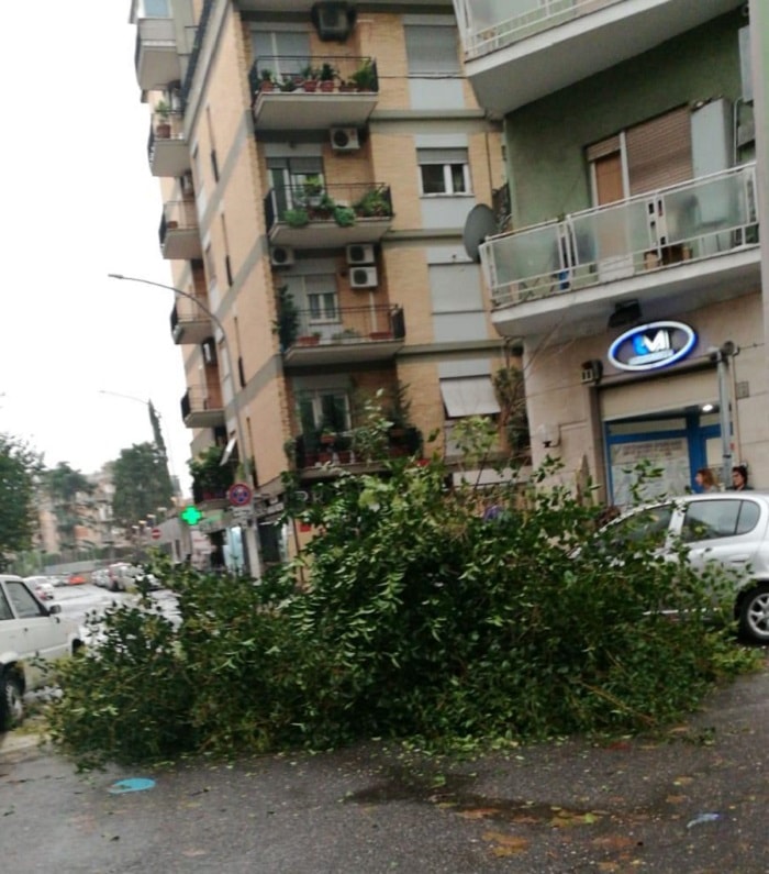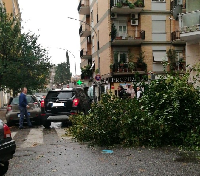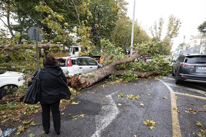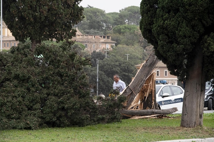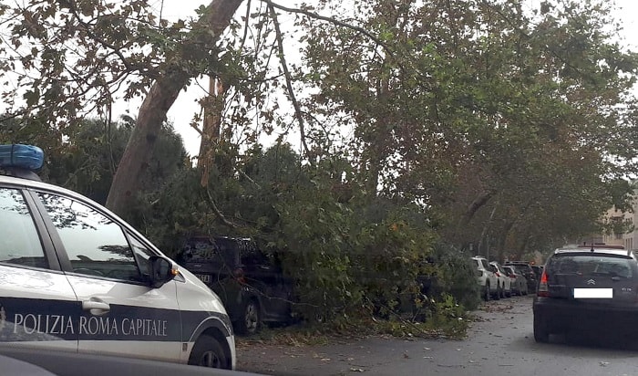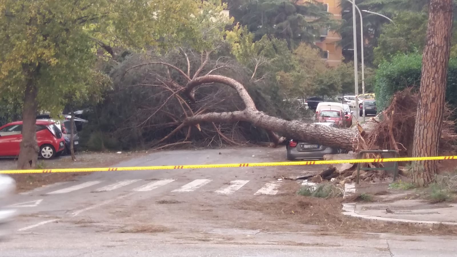 L’episodio più drammatico è avvenuto all’Eur dove un vigile del fuoco di 50 anni è rimasto gravemente ferito dalla caduta di un albero alla Montagnola. L’uomo stava tagliando un ramo in via Tommaso Odescalchi 14 quando un pezzo di tronco gli è crollato addosso colpendolo sulla testa e sulla schiena ed ora è ricoverato in codice rosso in ospedale.