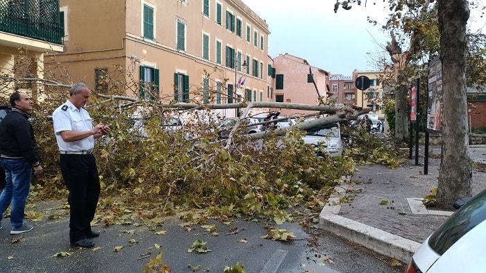 NETTUNO – L’allerta maltempo che sta colpendo in queste ore Roma non ha risparmiato la provincia e il litorale. A via della Vittoria a Nettuno, proprio davanti al comando dei vigili e adiacente all’ufficio postale centrale, un grosso ramo si è spezzato all’improvviso, travolgendo due auto in sosta e schiacciandole. I danni sono ingenti: fortunatamente, al momento della caduta non c’erano pedoni o vetture in moto e non si segnalano feriti.