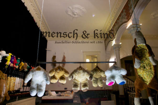 La Mensch & Kind. Cuddly Toy-Butchery ha aperto pochi giorni fa nel centro di Amburgo. Al suo interno l’artista-macellaio si esibisce dilaniando i “poveri” peluche, sotto gli occhi dei passanti. “Ho cominciato staccando le teste degli orsacchiotti e attaccandole a un gancio”, racconta Menschenkind. E poi ha pensato di farne prosciutti e costatine.