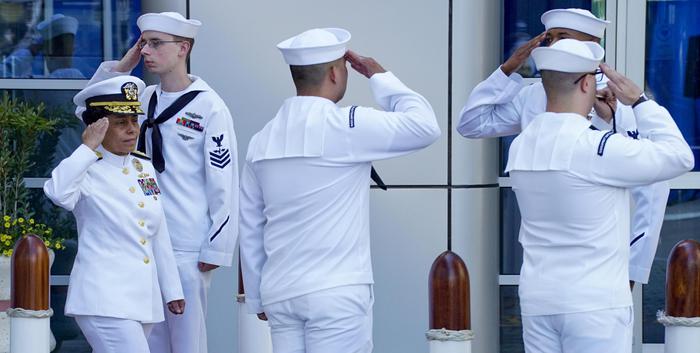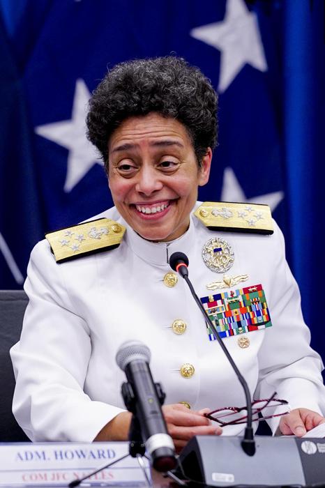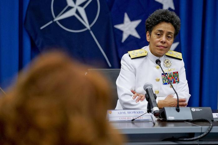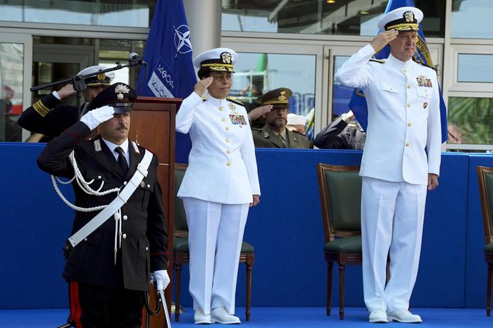 Howard è molto determinata. Questa è la parola che meglio definisce il nuovo comandante Jfc Naples Nato. E al cronista che le domanda se nella Marina ha avuto più problemi dall’essere donna o di colore (domanda che strategicamente ha voluto fosse l’ultima della serie di 4 concesse alla stampa nel giorno del suo insediamento), risponde prima con un sorriso smagliante, poi con semplicità: “Problemi? Io sono piccola di statura, ed è stato il problema più sentito. Una domanda che mi viene rivolta spesso è come posso cosi’ piccola comandare tanti uomini. E io dico ‘aspettate e vedrete'” (foto Ansa).
