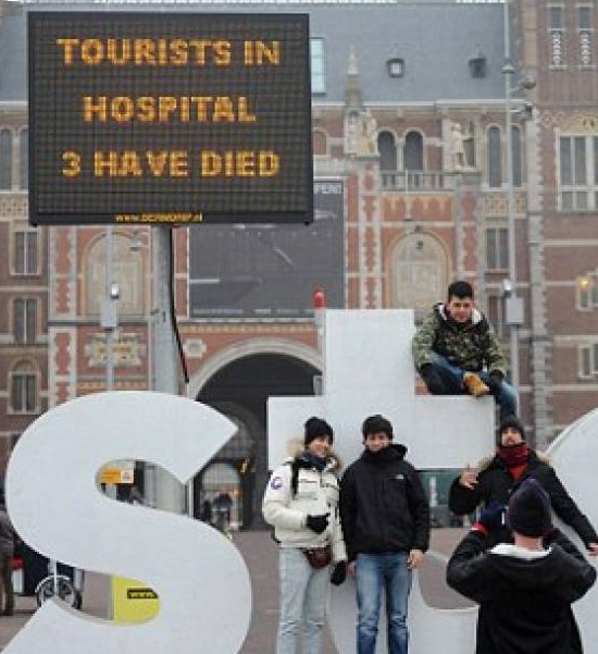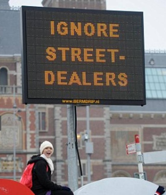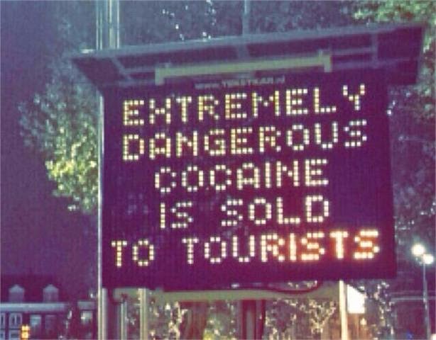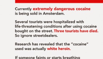 AMSTERDAM – Eroina venduta al posto della cocaina che, se sniffata porta al rischio di morire di overdose. Accade ad Amsterdam in queste ore: in città è infatti partita una campagna informativa massiccia che cerca di fermare i numerosi episodi di morti causate dalla vendita di eroina come se fosse cocaina. Come mostrano le foto a corredo di questo articolo, la campagna avviene anche con dei cartelli luminosi e dei volantini diffusi in strada.