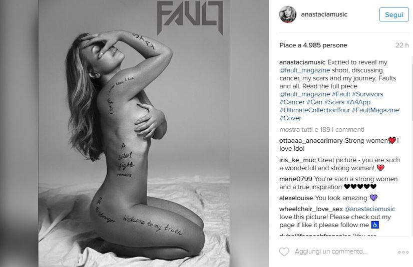 ROMA – Anastacia si spoglia per mostrare le cicatrici sul suo corpo. La cantante americana di 48 anni ha voluto condividere questa foto per potersi finalmente “riappropriare” del proprio corpo. Seminuda e con le mani davanti ai seni è apparsa così in un servizio per “Fault Magazine”. Anastacia racconta la malattia, il tumore e la paura: “Le mie cicatrici sono parte del mio viaggio e il modo per ricordare tutto quello che ho passato” scrive su Instagram pubblicando lo scatto di copertina della rivista.