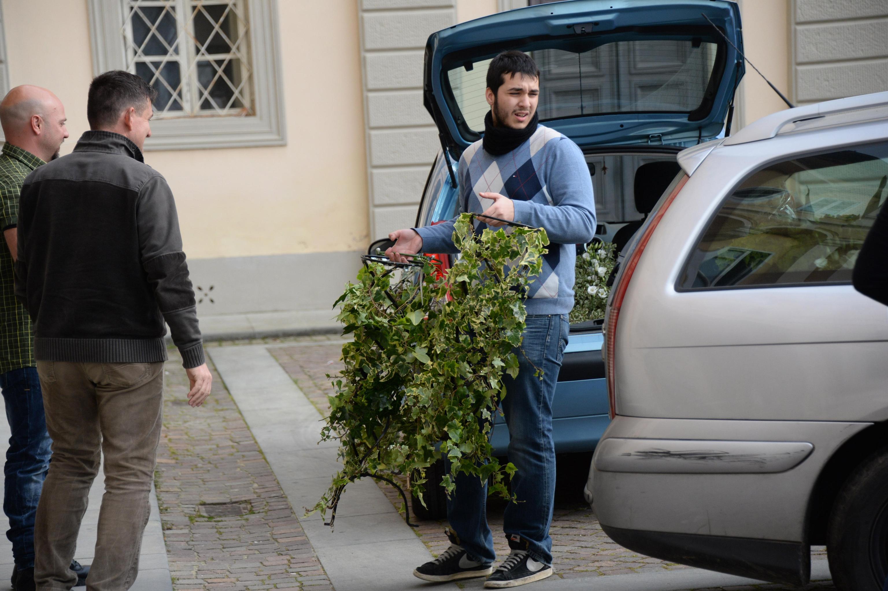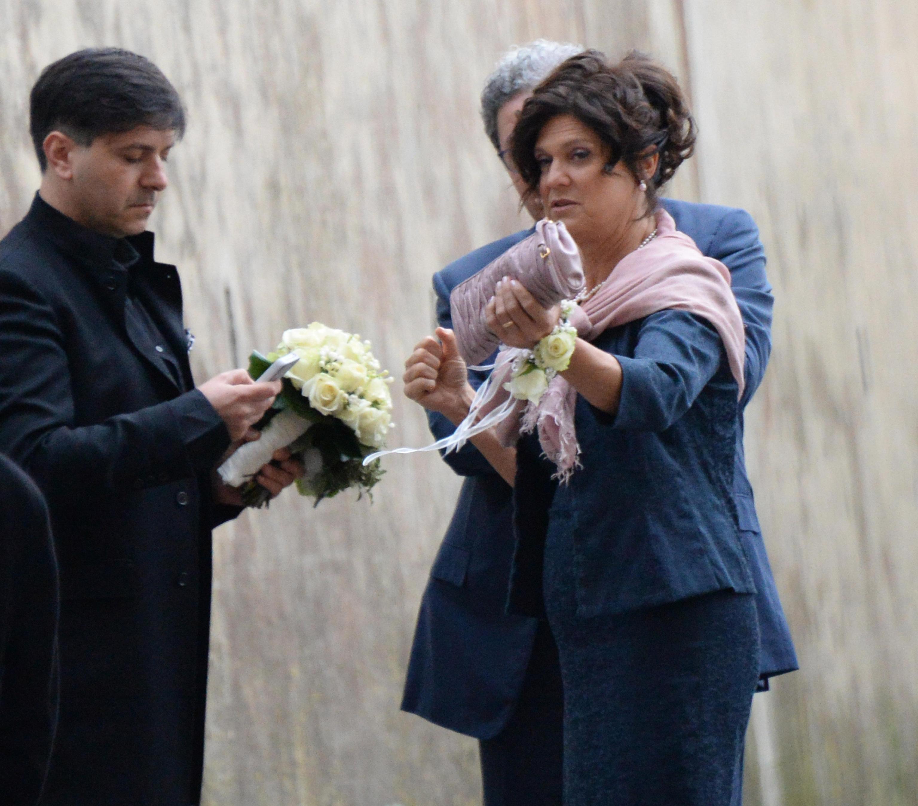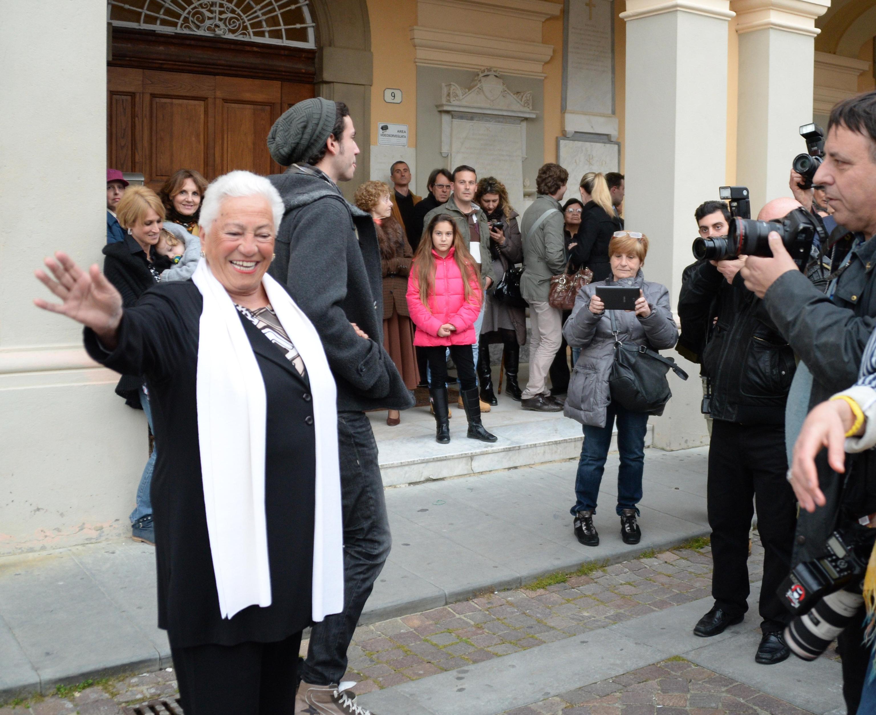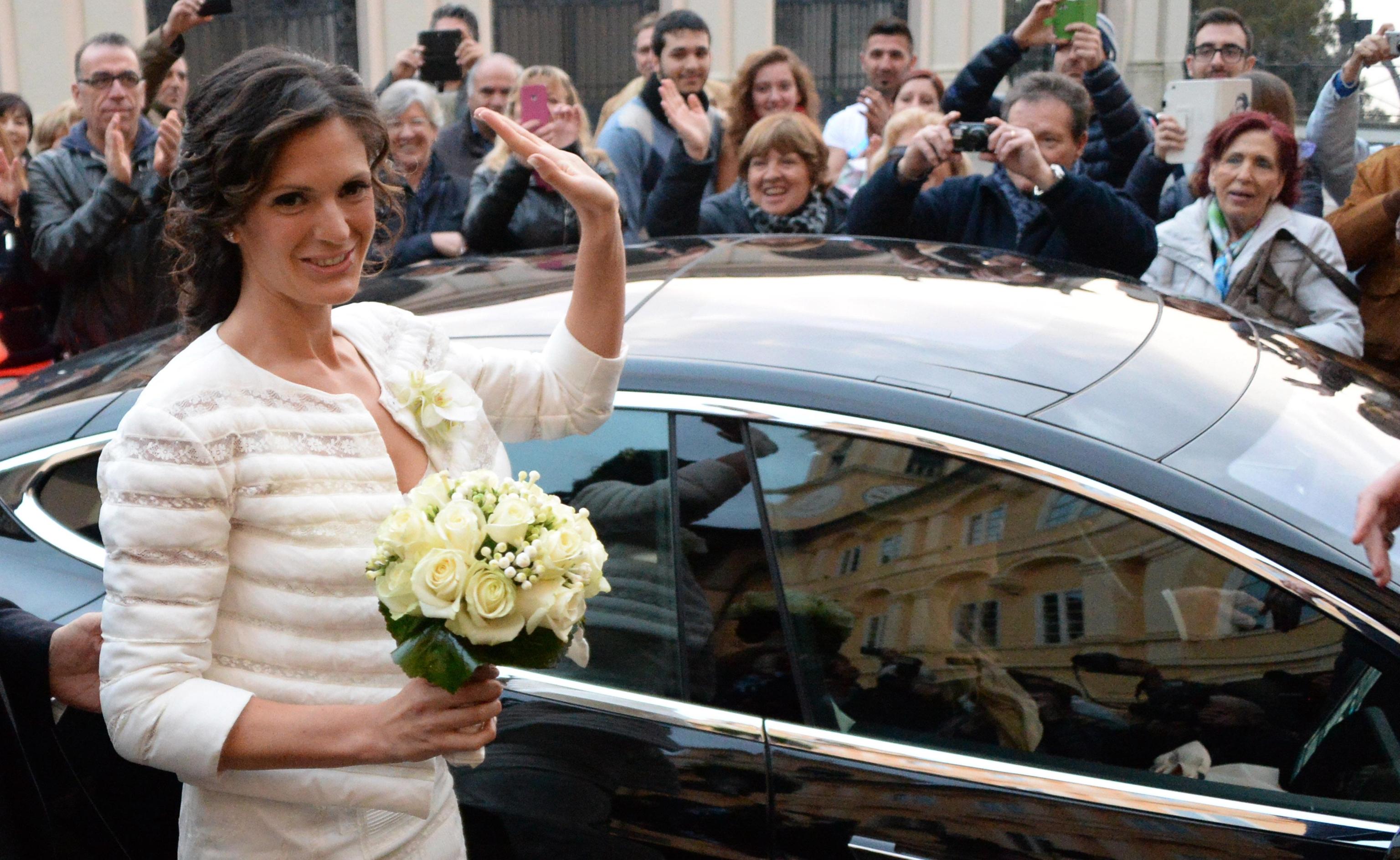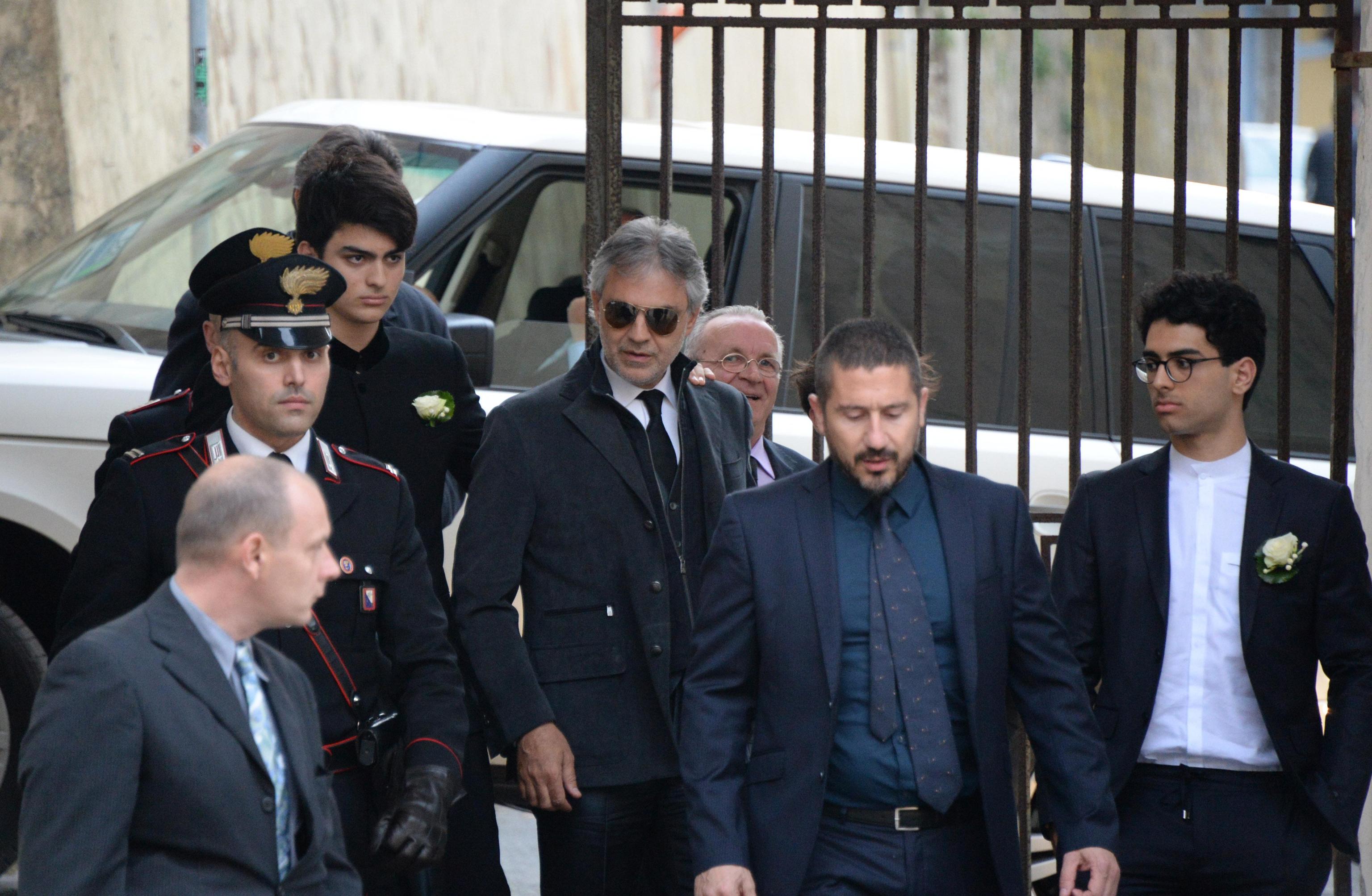 Bocelli è arrivato al Santuario a bordo di un Range Rover bianco alle 17.30 in punto, mezz’ora prima dell’orario fissato per cerimonia. In completo blu, accompagnato dai figli Matteo e Amos ha attraversato sorridente il sagrato tra alcune decine di curiosi e poi si è diretto in chiesa. La sposa si è presentata con 25 minuti di ritardo con un bouquet di rose gialle in mano e un vestito bianco, semplice, senza velo e capelli sciolti fermati da coroncine di rose bianche.