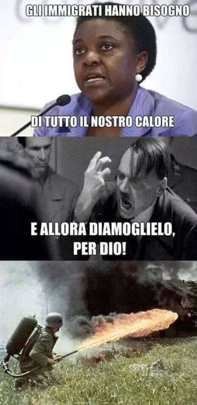 In un altro post di alcuni giorniย fa Della Puppa citava l’ex ministro Kyenge e la sua esortazione ad accogliere con calore gli immigrati pubblicando una foto di Hitler con un lanciafiamme, insieme alla scritta “E allora diamoglielo, per Dio!”