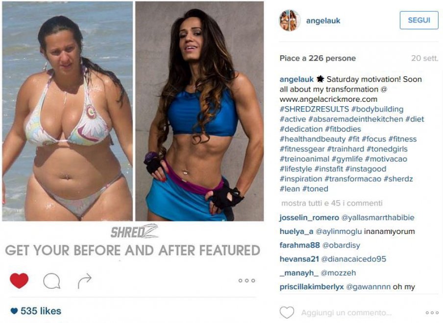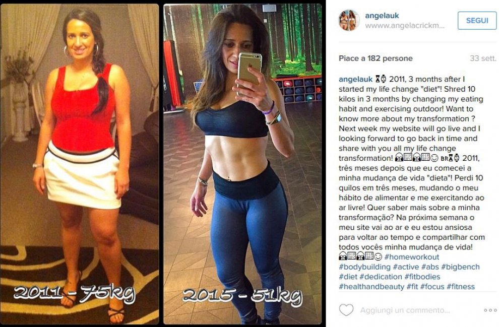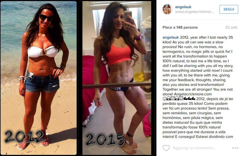Una sua amica allora le ha consigliato di cambiare radicalmente stile di vita e alimentazione e così Angela Crickmore ha iniziato a seguire una dieta rigorosa e a fare lunghe sessioni di allenamento in palestra, fino a raggiungere il risultato di aver perso 35 chili in appena 8 mesi. La donna ha pubblicato numerose foto su Instagram mostrando l’incredibile trasformazione del suo fisico.
