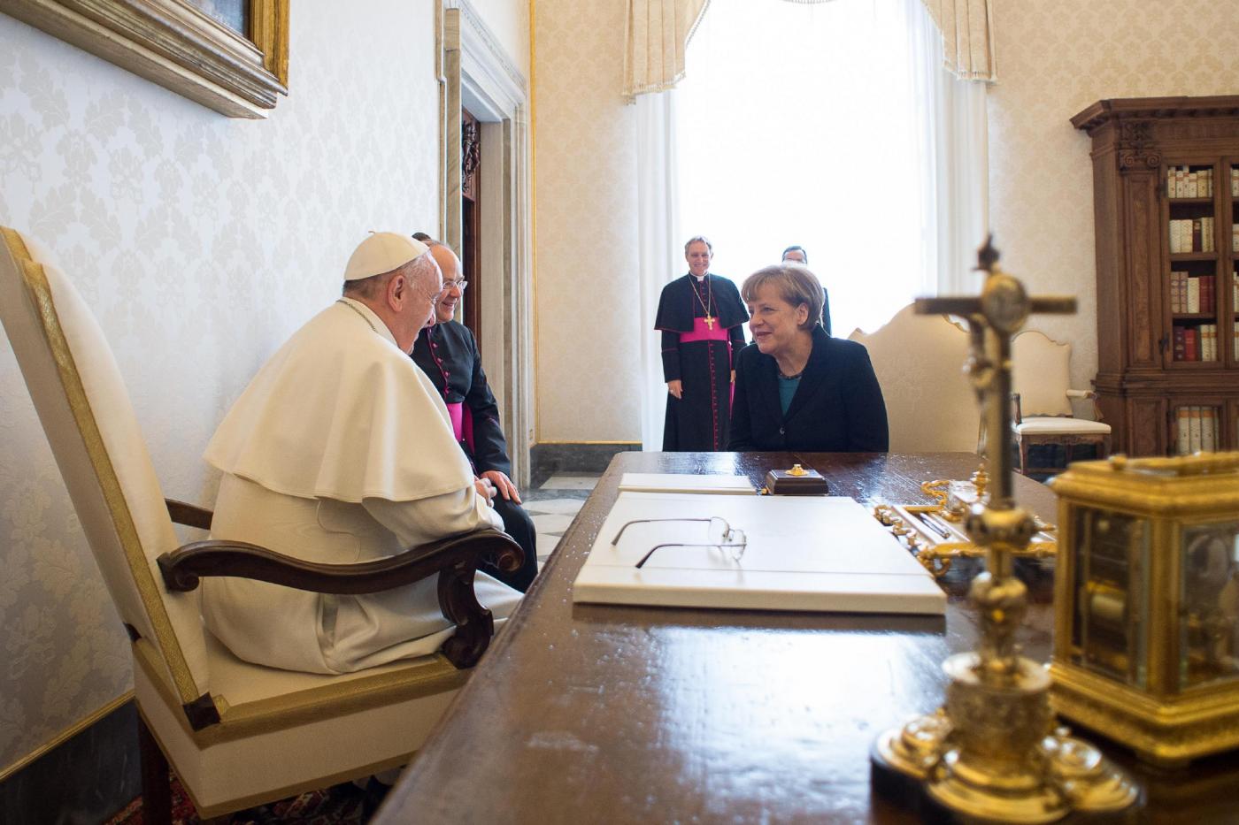 CITTA’ DEL VATICANO – Udienza privata in Vaticano per la cancelliera tedesca Angela Merkel. Un sabato di incontri con il clero romano: di prima mattina da Papa Francesco, poco dopo alla Comunità di Sant’Egidio.
