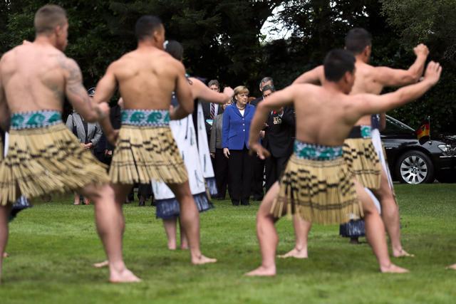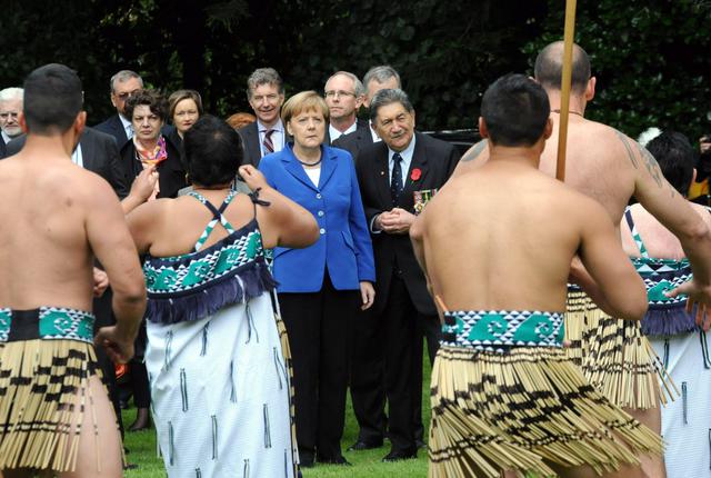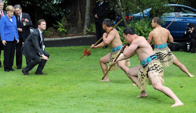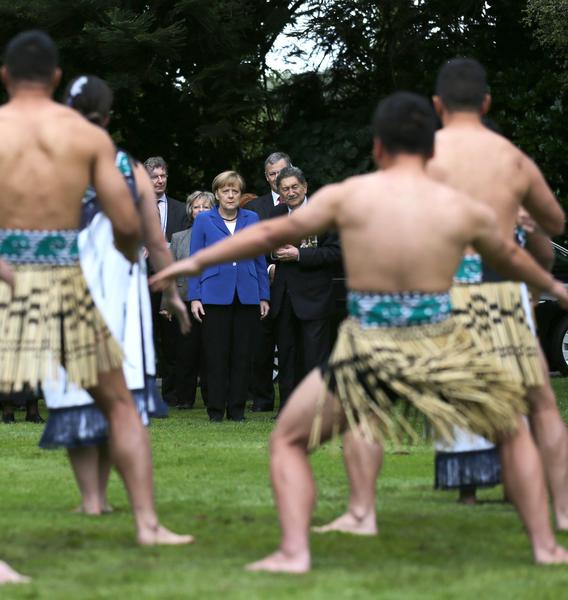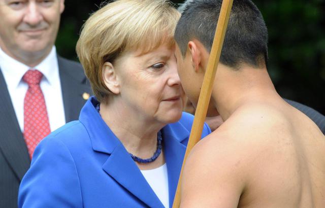 Al suo arrivo ad Aukland, la lady di ferro tedesca si è adattata al “protocollo” degli aborigeni neozelandesi. Il benvenuto consiste nel contatto tra il naso e la fronte delle due persone che si salutano. Dopo la cerimonia, la Merkel ha incontrato il primo ministro John Key. Poi partirà per l’Australia dove è in programma il G20.