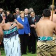 AUKLAND (NUOVA ZELANDA) – La cancelliera tedesca Angela Merkel fa tappa in Nuova Zelanda prima di volare in Australia per il G20, e viene accolta con un “hongi”, il tradizionale saluto maori.