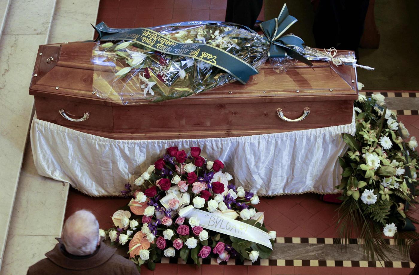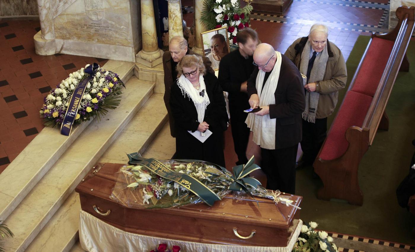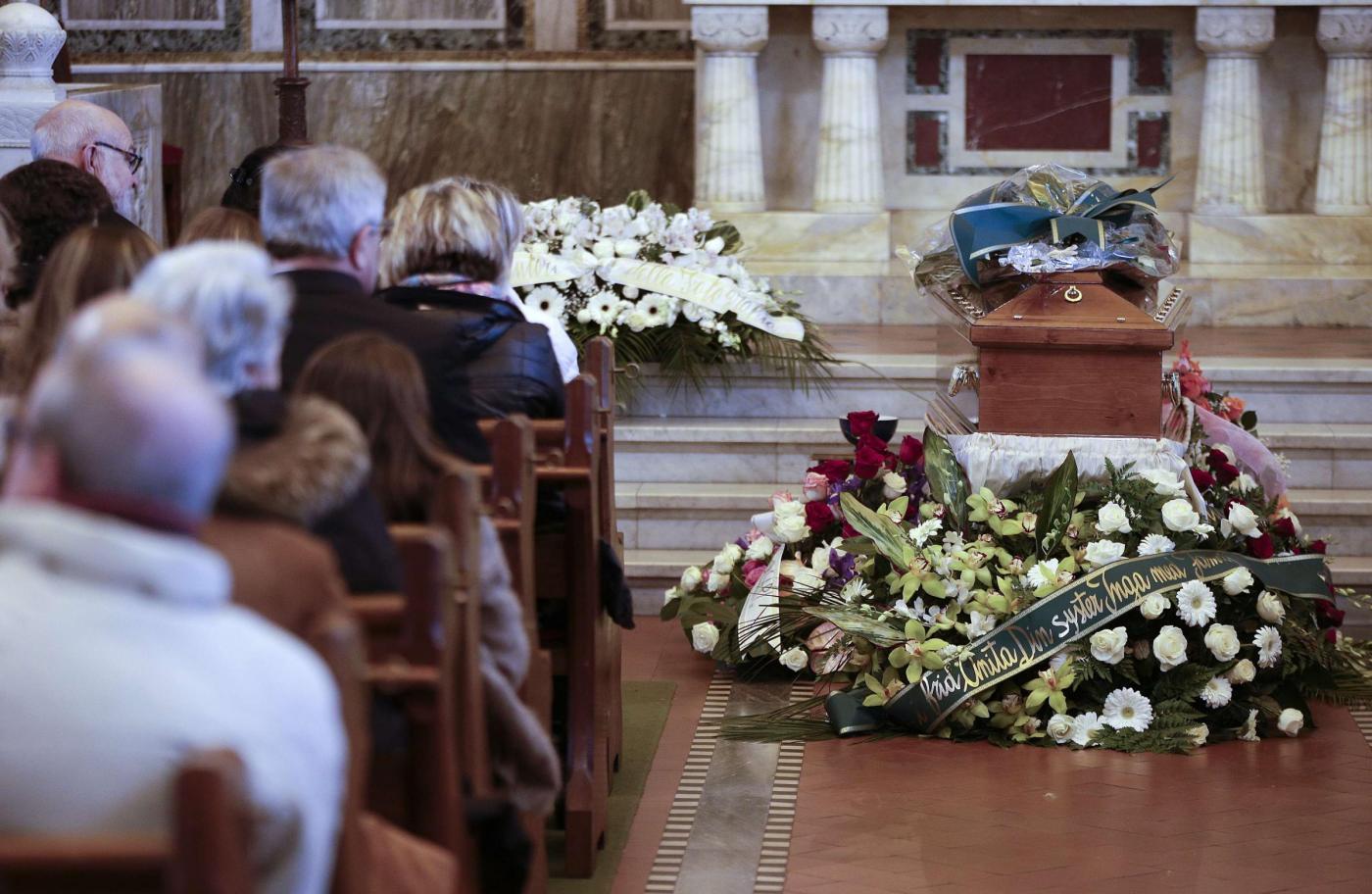 Intanto sempre oggi, si sono svolti a Roma nella chiesa evangelica luterana di via Sicilia i funerali. Pochi i presenti in chiesa, un mazzo di gigli bianchi sulla bara. Le ceneri andranno in Svezia (foto LaPresse)