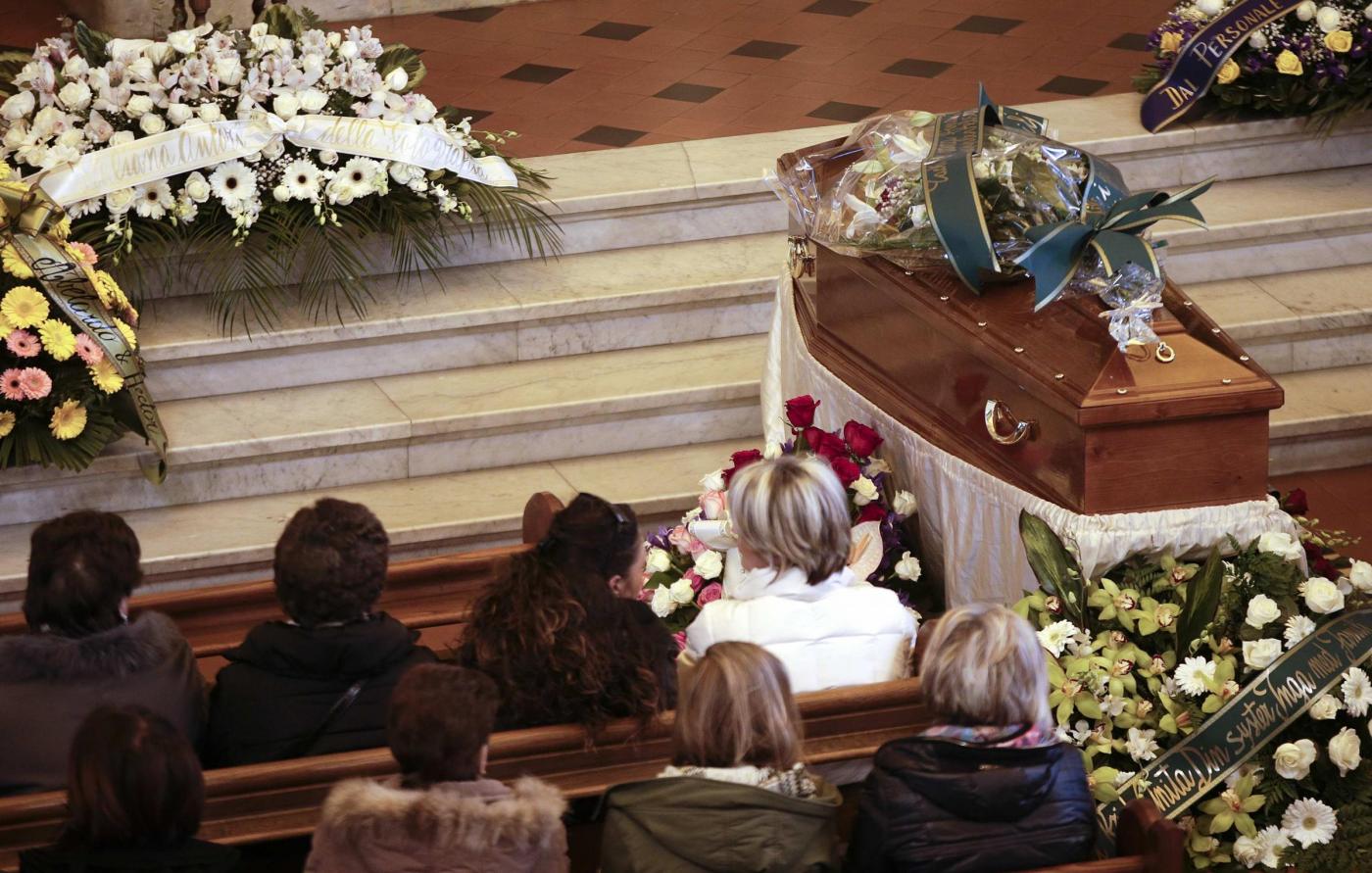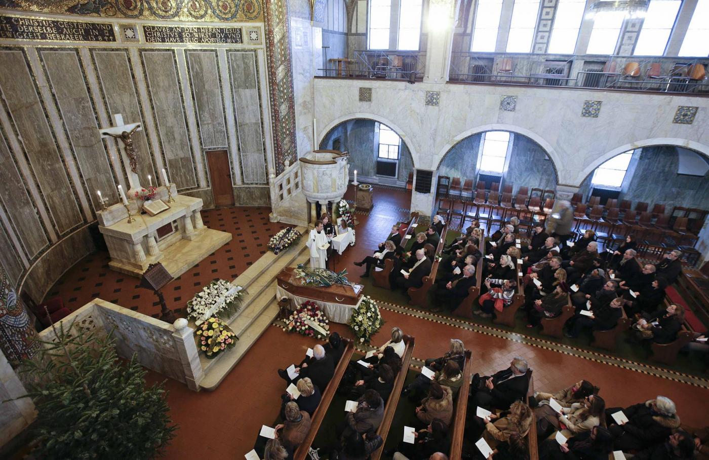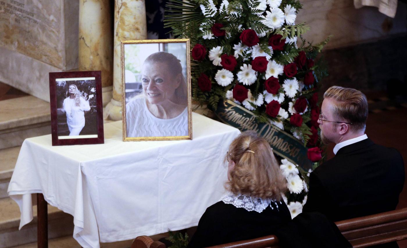 Intanto sempre oggi, si sono svolti a Roma nella chiesa evangelica luterana di via Sicilia i funerali. Pochi i presenti in chiesa, un mazzo di gigli bianchi sulla bara. Le ceneri andranno in Svezia (foto LaPresse)