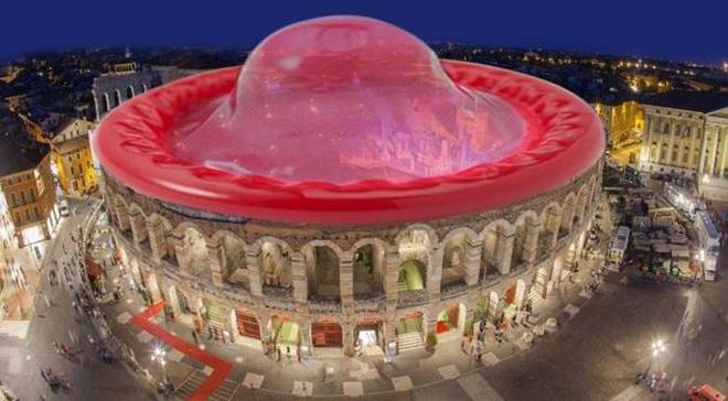 VERONA – Un progetto per la realizzazione della copertura dell’Arena di Verona sarĂ finanziato da Calzedonia. Ad annunciarlo esultante è Flavio Tosi, sindaco della cittĂ che dal 2012 parla del progetto. Entusiasmo che perĂ² non ha coinvolto gli utenti della rete, che si sono scatenati sul web in una serie di fantasiose e divertenti coperture alternative per l’Arena.
