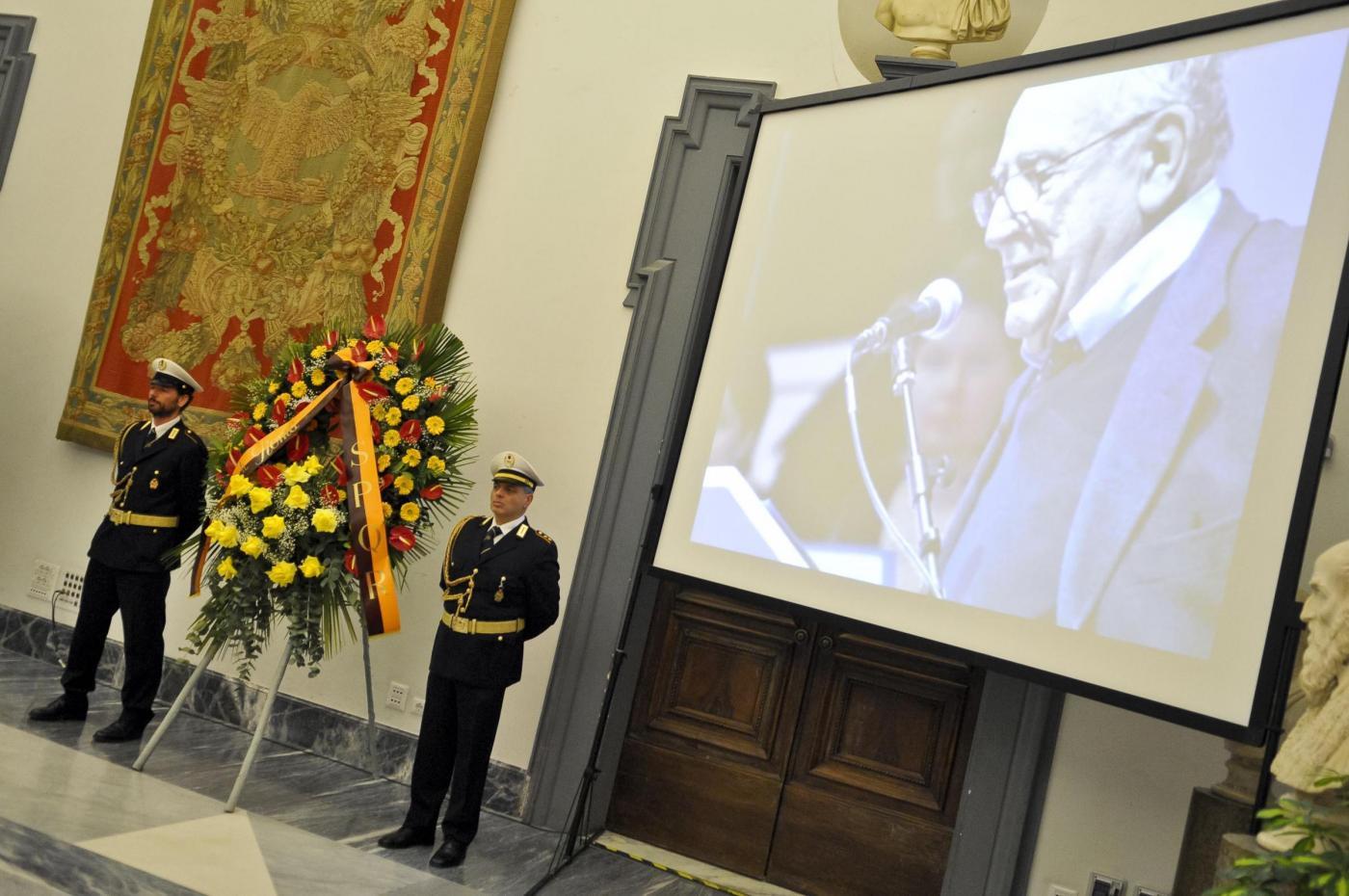 La stessa Protomoteca ospiterà, dalle 16 alle 17 di oggi, la cerimonia laica per l’ultimo saluto al grande protagonista dello spettacolo italiano (foto LaPresse):