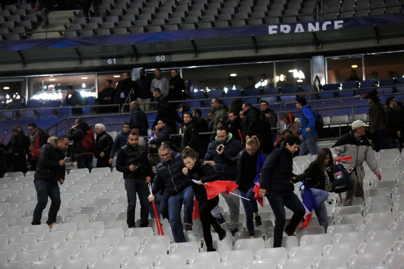 Nel frattempo a Saint-Denis, allo Stade de France, tre esplosioni scuotevano i 50.000 presenti all’amichevole Francia-Germania. Una sembra sia stata provocata da un kamikaze. I giocatori si sono fermati, alcuni spettatori sono riusciti a uscire, gli altri sono rimasti bloccati dalla polizia all’interno fin dopo il termine della gara. Almeno trenta le vittime.