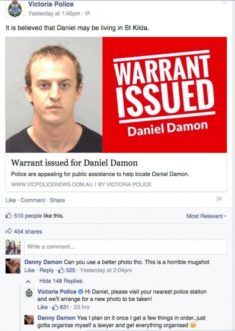 Daniel Damon è un ragazzo australiano di 25 anni latitante. Il ragazzo è infatti accusato di traffico di droga e malgrado l’accusa, Damon ha voluto contattare la polizia dello Stato di Victoria per chiedere agli agenti di cambiare la foto pubblicata su Facebook.